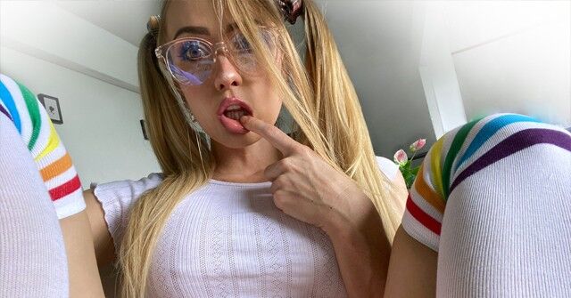 «Вот чем занимается смазливая студентка пока родителей нет дома. Белокурая красотка в очках ублажает себя анальной мастурбацией, а не готовится к сессии. Крошка засовывает себе в упругую попку анальную пробку и нереально возбуждается, а потом достает розовый вибратор, который вставляет в мокрую пизду. Удовольствие от такой стимуляции она получает сильное, а уже вскоре вибратор оказывается у неё в заднице, и она испытывает анальный оргазм.»