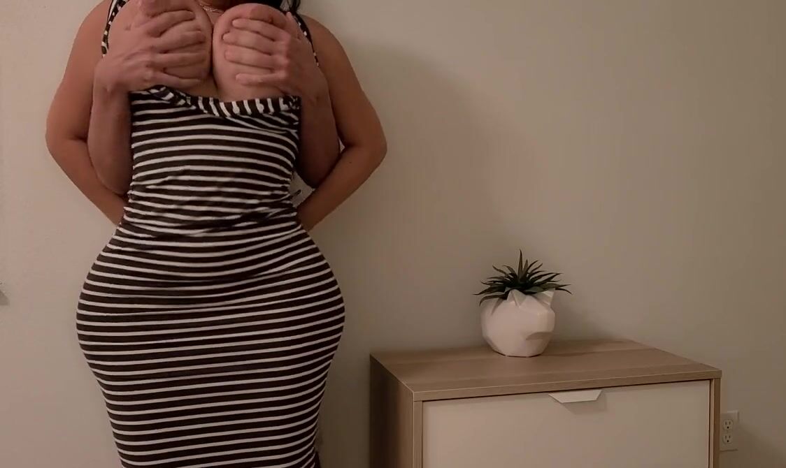 Жопастая телка в полосатом платье заходит в гости и дает в пизду
