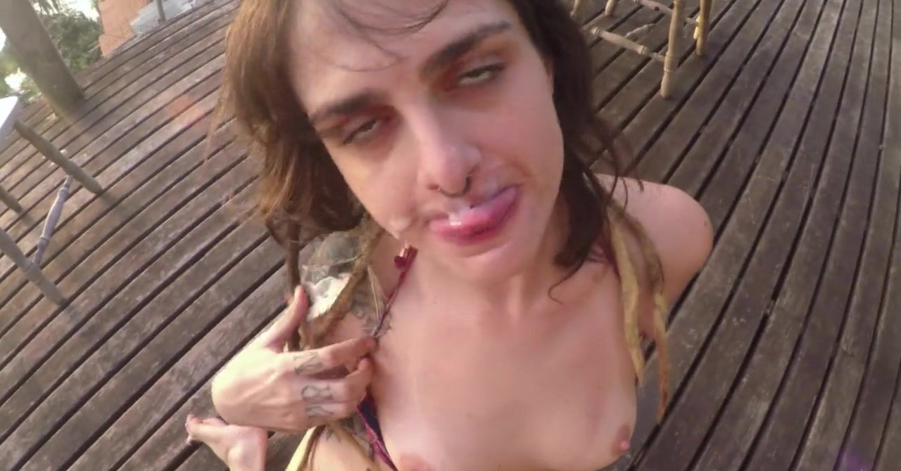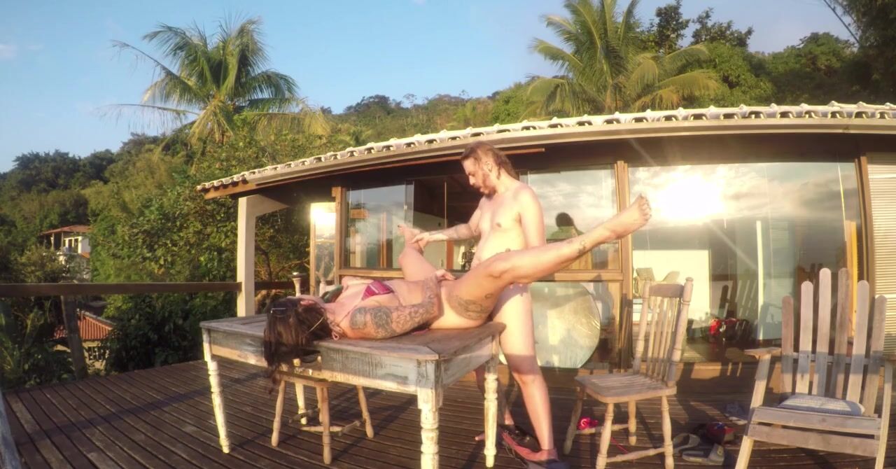 «Как же прекрасно проводить отпуск с татуированной неформалкой. Пара только то и делает, что трахается на отдыхе. Они делают это как вилле, так и на пляже или в других мечтах. Татуированная девка с дредами обожает секс и с наслаждением делает бойфренду жаркий минет, позволяя ему снимать всё происходящее на камеру. Собралась приличная подборка домашнего секса, которую пара будет пересматривать с удовольствием.»
