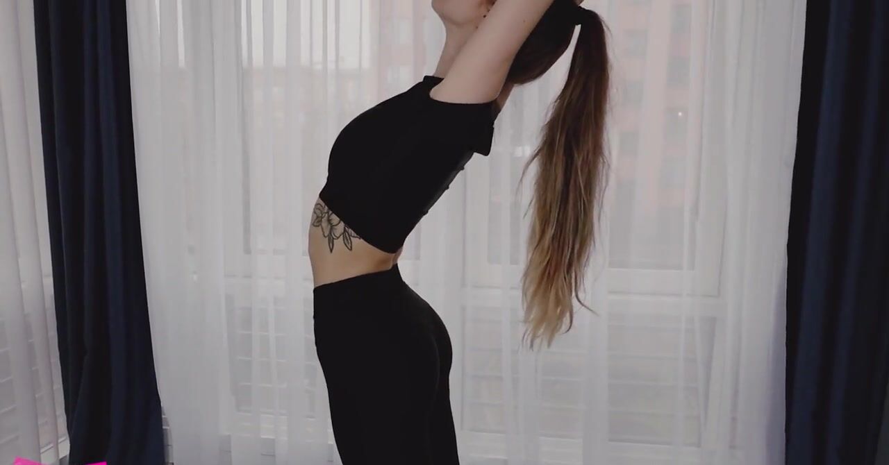 «Худышке нравится то, как она выглядит, поэтому перед тренировкой привлекательная девушка спускает с себя лосины и делает несколько фоток своей упругой задницы. Тренироваться девка решает тоже без лосин, она встает раком и прогибает спину как можно сильнее, возбуждая тренера. Без интима на тренировке не обходится, но это по обоюдному согласию, так что всё хорошо, девка с кайфом принимает твердый хуй в свою писю.»