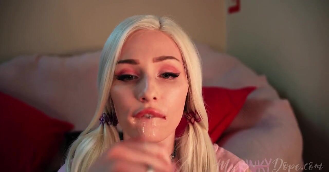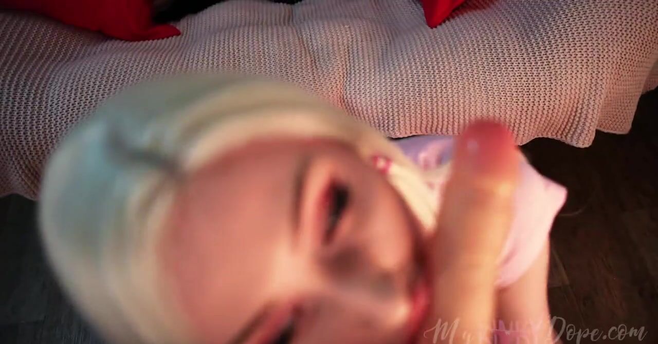 «Раньше красотка усердно тренировалась на этом искусственном члене, она хотела научиться делать глубокий минет. Теперь цыпочка уже всё умеет, но бойфренда у неё нет, а сосать всё равно хочется. Поэтому белокурая крошка с хвостиками принимается полировать этот резиновый хуй и представляет, что сосет болт парня. Её это возбуждает, развратница сосет фаллос с наслаждением и представляет как её рот наполняется спермой.»