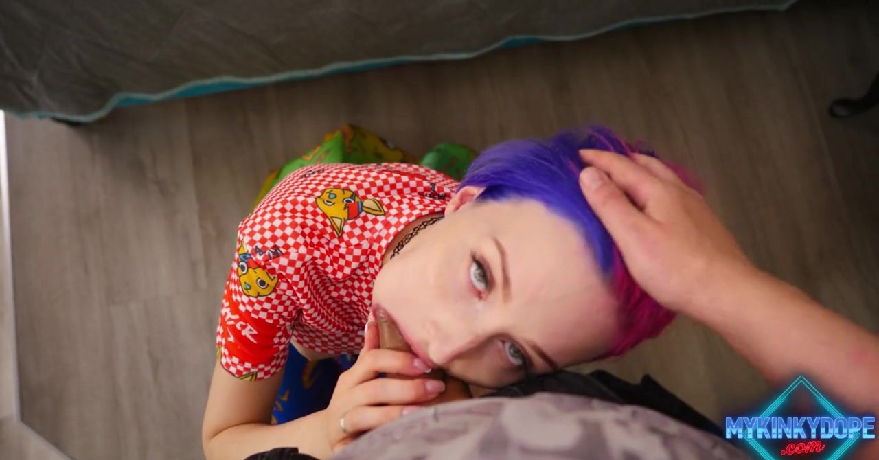 «Татуированная нефорша с разноцветными волосами собиралась покататься на скейте и заняться жарким сексом. Как видите, на скейте она уже покаталась, так что теперь бойфренду нужно достать свой хуй и насладиться её страстным ротиком. Стройная сучка с силиконовыми сиськами своё дело знает, она прекрасно сосет, а потом отдается в бритую киску и наслаждается жарким половым актом, её можно трахать даже немного грубо.»