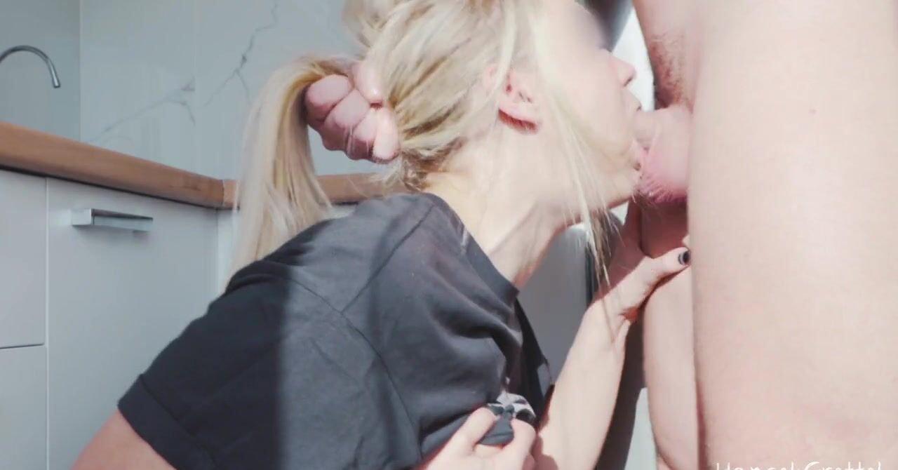 «Парню плевать на обед, который готовит его белокурая девушка, он больше хочет трахнуть эту хозяюшку здесь и сейчас. Девка, вообще-то совсем даже не против, она разрешает приласкать упругую попку, а потом показывает натуральные сиськи и опускается на колени, чтобы сделать минет. А после отсоса можно уже и в бритую пизду отдаться на столе. Бойфренд может страстно её ебать и кончать в мокрую щелку развратницы.»