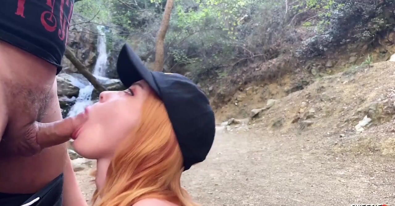 «Турист правильно сделал, что заказал экскурсию у этой рыжей телки. Привлекательная девушка гид оказалась очень искусным проводником, она показала водопад в лесу, а потом взялась смачно сосать крепкий хуй парня. Не зря он ей переплатил, проказница показала на что способна, молодчику безумно понравилось наслаждаться её ротиком, а потом киской. Кончил же он на сочную попку бестии, залив её горячей спермой.»
