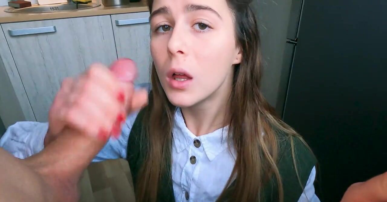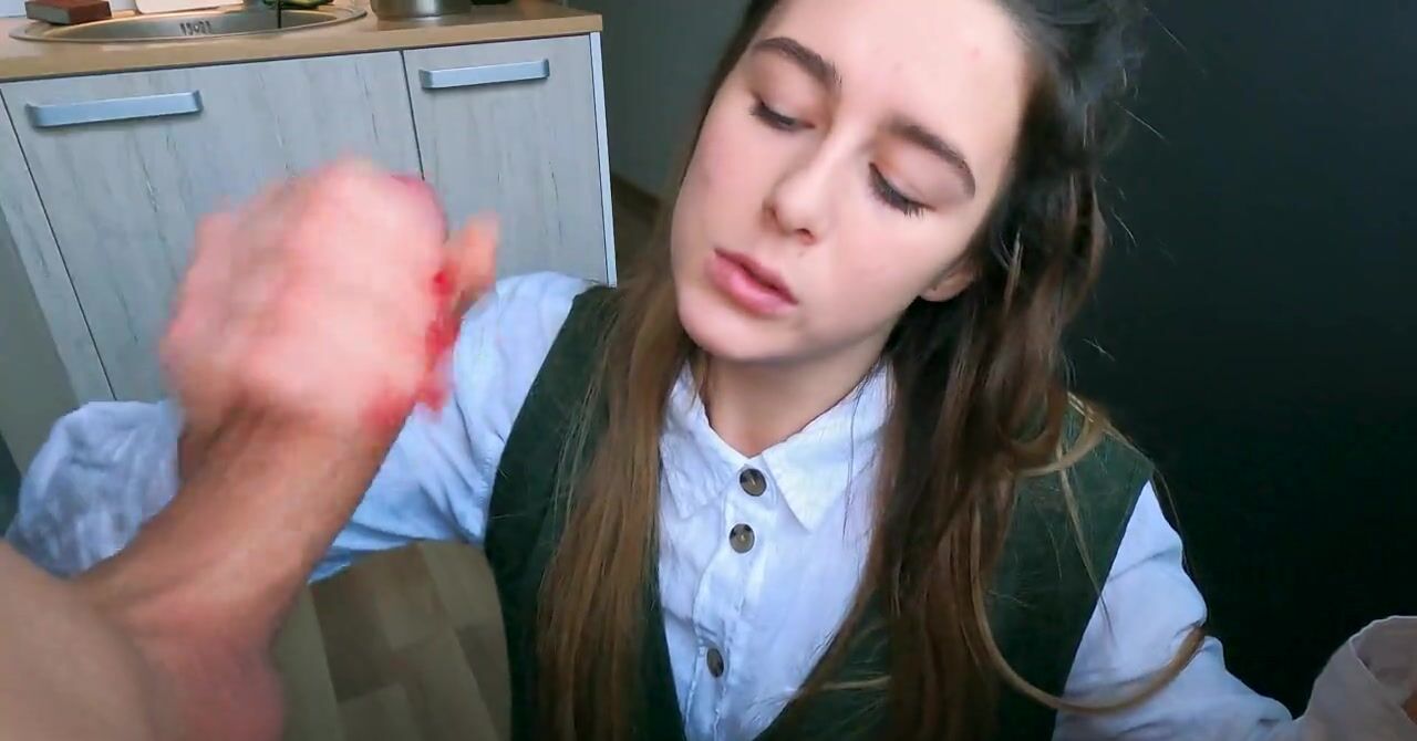 «Милая отличница берется смачно сосать толстый член парня и делает это очень даже умело. Чел и представить себе не мог, что эта серая мышка на самом деле такая хорошая минетчица. Девчонка сама же получила нереальное удовольствие от оральных ласк. Она как следует поработала ротиком и получила сперму на своё миленькое личико. А на следующий раз приятель обещает засадить свой крепкий фаллос уже в её писю.»