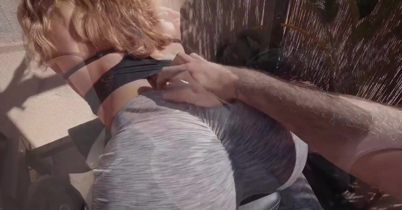 «Красотка на балконе сперва показывает идеальные сиськи, а парень их трогает, закономерно возбуждаясь. Далее цыпочка уже приспускает с себя лосины и показывает упругую киску, а так же попку. Чел понимает намек и берется делать кунилингус, как следует вылизывая щелку. Девчонка наслаждается оральным сексом и просит поскорее вставить в неё. Трахать её нереально круто, у девки шикарное тело и упругая пизда.»