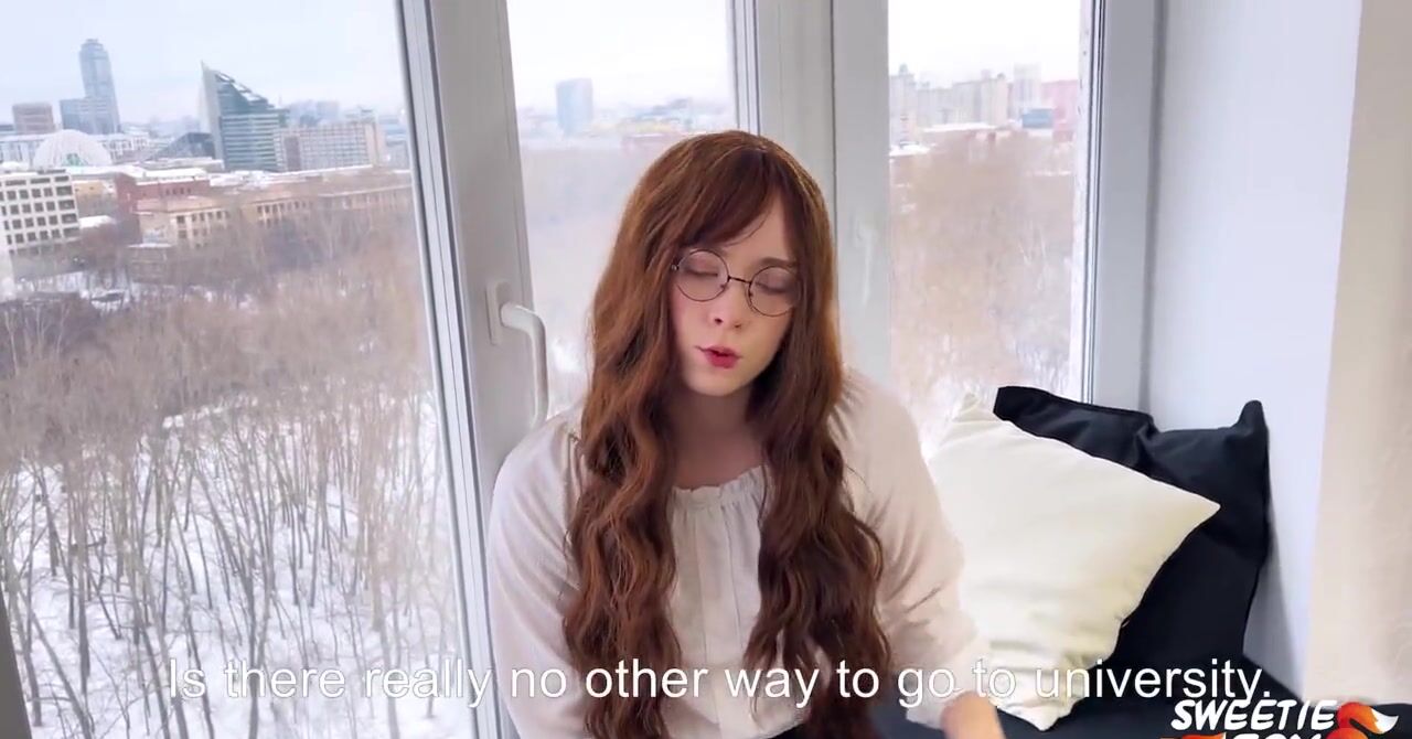 «Милая первокурсница очень наивная девушка, она действительно пытается уговорить учителя поставить ей хорошую оценку. Но в этом учебном заведении сперва нужно что-то дать, чтобы потом что-то получить. Нет, никакие деньги преподавателю платить не нужно, он хочет получить другую взятку от рыжей милашки в очках. Студентка вскоре понимает и опускается на колени, она с радостью сосет его хуй и ебется в киску.»