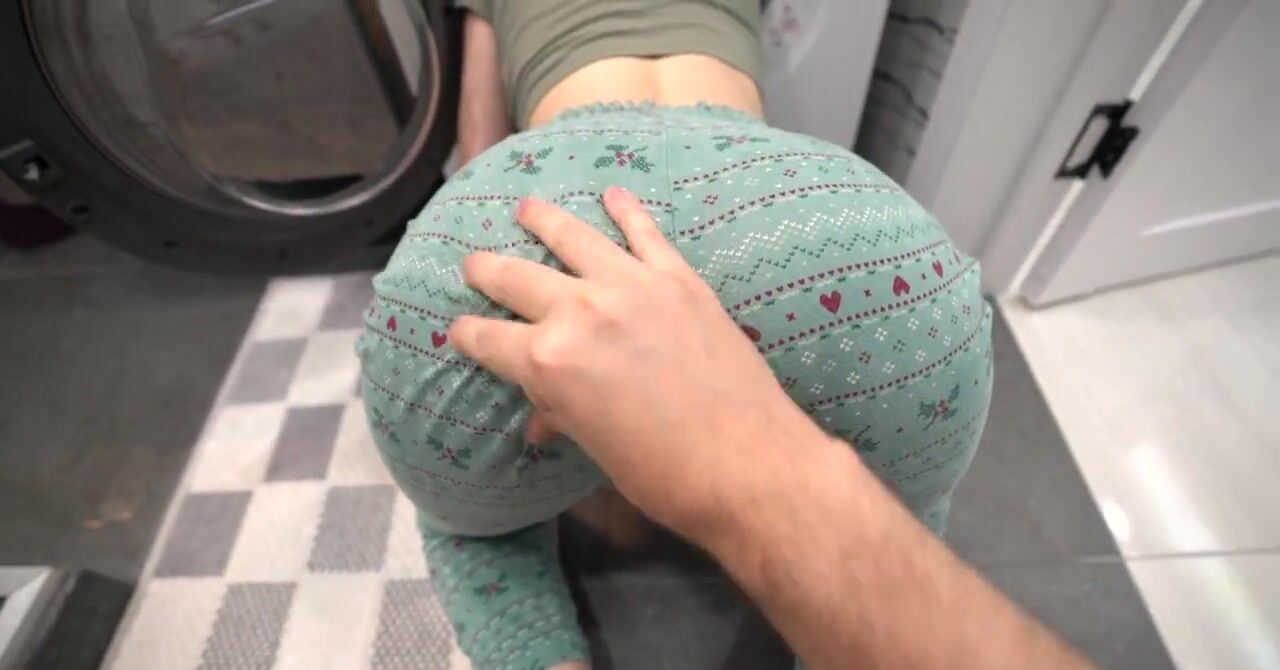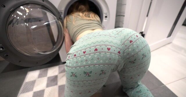 Загружала бельё в стиральную машину и была выебана сводным братом