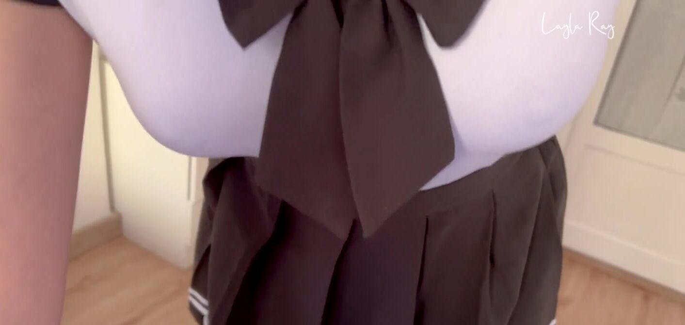 «Студентка задирает юбку и показывает упругую попку, разрешая бойфренду ещё и потрогать её. Пошлая цыпочка приходит к любимому сразу же после занятий, желая заняться с ним сексом. Эта привлекательная крошка с большими красивыми сиськами берется делать смачный минет после демонстрации упругого тела. Она как следует сосет и садится на член. Чуваку безумно нравится любоваться её упругим телом во время ебли.»