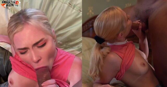«Блондинка не расстраивается, что бойфренд в порыве страсти разорвал её новые джинсы на попке. Что ж, раз уж он так сделал, то потом купит ей новые штаны, а пока что телка не будет париться. Она показывает сочную задницу во всей красе и опускается на колени, ведь секс должен начинаться с оральных ласк. Сучка смачно полирует крепкий хер, а потом уже отдается в мокрую пизду и наслаждается бурными оргазмами.»