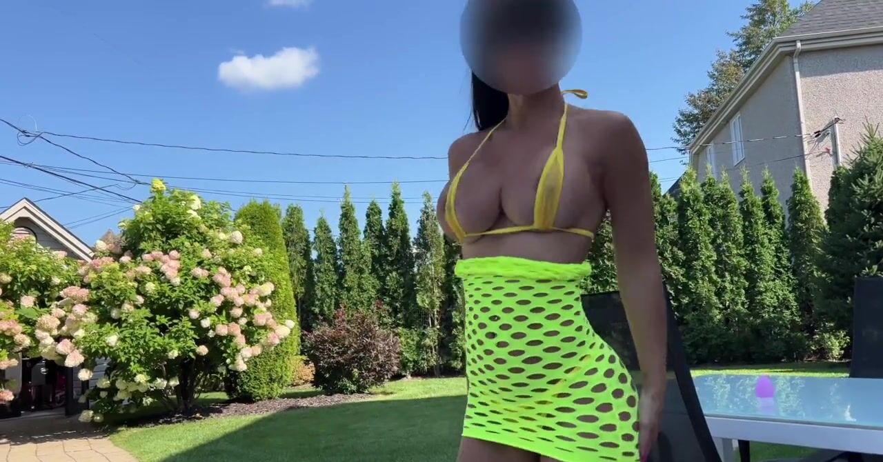 «Трахаться в спальне надоедает, поэтому красотка жена предлагает переместиться во двор и там заняться страстным сексом. А если увидят соседи? То пусть не завидуют. Шикарная супруга раздевается и показывает смуглое тело, которое она ещё и маслом увлажняет. Эта сучка возбуждает мужа и овладевает его членом. Брюнетка не только отдается в бритую пизду и жарится в разных позах, она ещё и минет глубокий делает.»