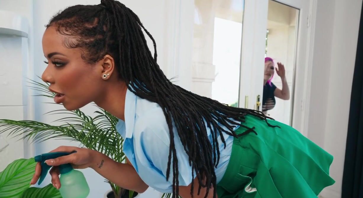 «Две красотки привязывают мужика к стулу, а затем склоняют его к групповому сексу. Они достают его хуй и принимаются сосать. Обе подружки ведут себя очень возбужденно и развратно. Кажется, что каждая из них не трахалась уже очень и очень давно. Они сделали нереально жаркий минет, а потом развязали самца и принялись с ним страстно трахаться в киски по очереди. А ещё телкам захотелось получить сперму на лица.»