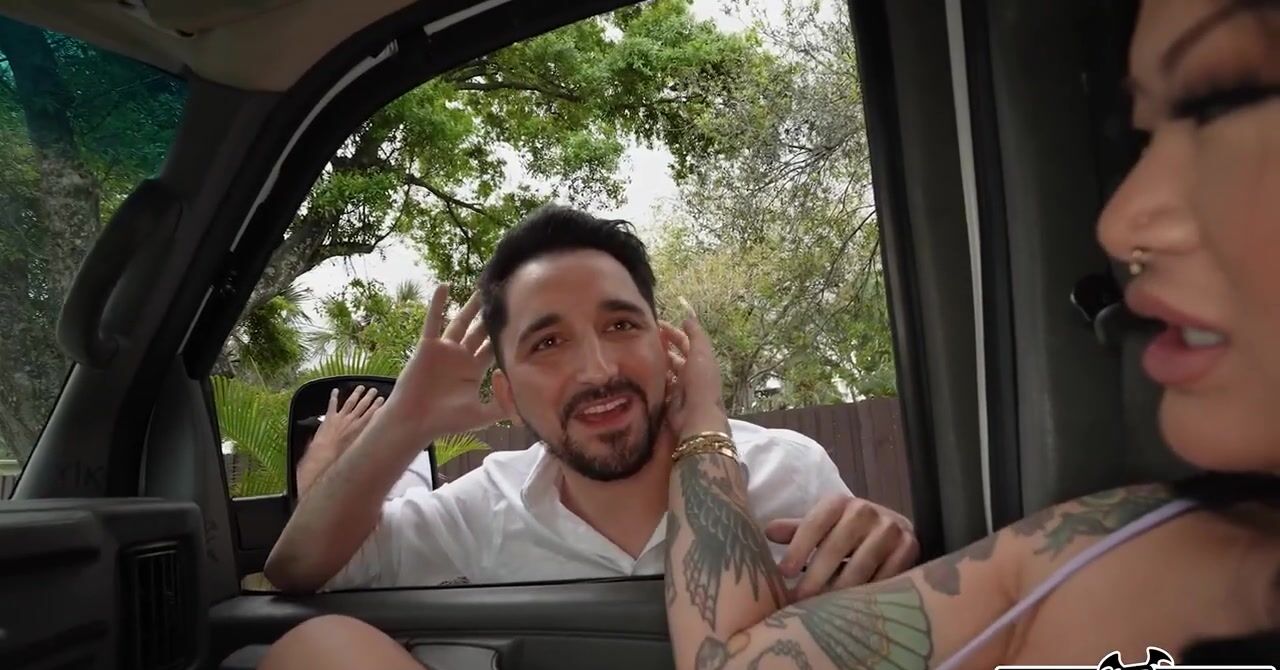 Татуированная азиатка ездит по району и соблазняет парней на секс