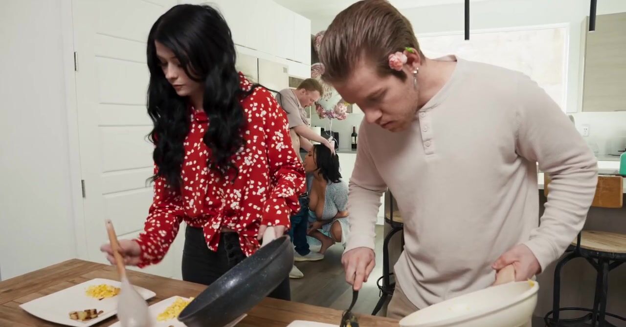 «Грудастая милфа теперь счастлива, она начинает встречаться с молодым парнем и секс у них просто шикарный. Они ебутся часто, даже по несколько раз в день, но это ничуть не утомляет. Брюнетка с натуральными сиськами обожает молодой хуй любовника, она страстно его отсасывает, а так же отдается в мокрую пизду. Даже когда к ним приходят гости, парочка спешит уединиться в спальне и там дико сношается, издавая громкие стоны.»