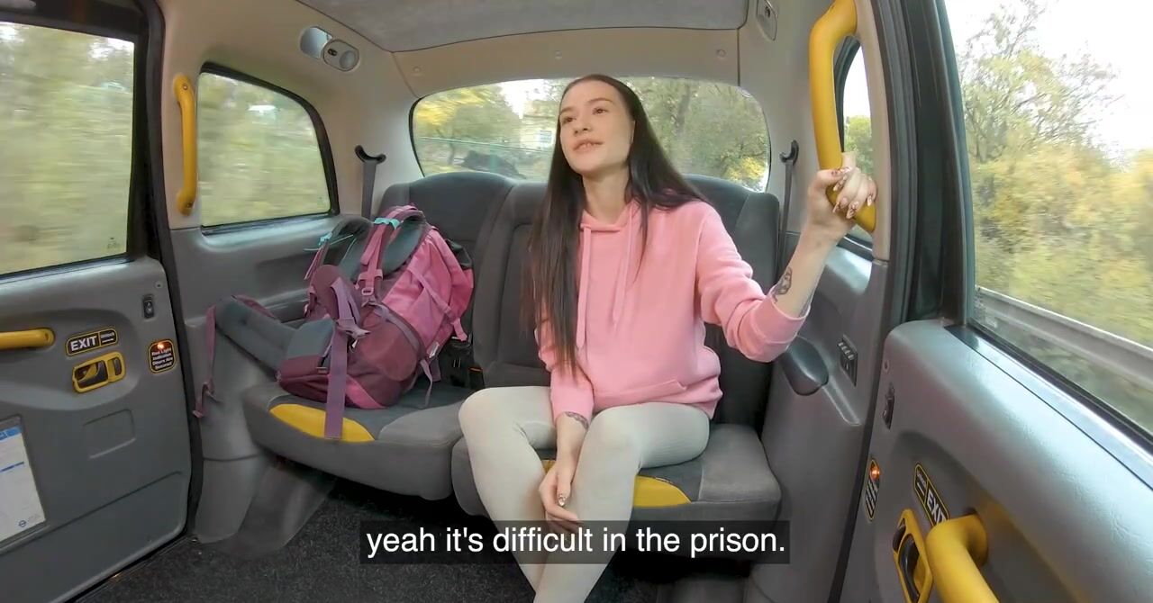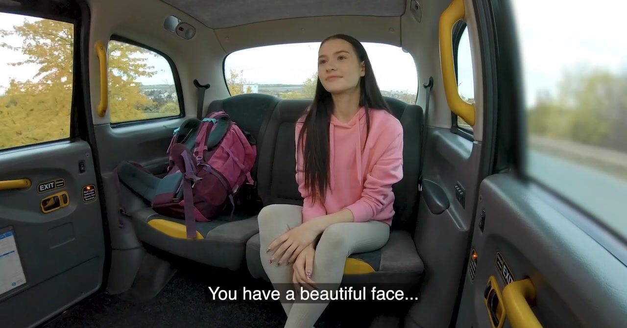 «Миленькая пассажирка раздевается в такси и принимается ласкать пальцами бритую киску, пытаясь соблазнить таксиста на еблю. Эта привлекательная худышка с маленькими сиськами вскоре получает, что хочет. У водителя оказывается большой хуй, так что миниатюрная брюнетка может кайфонуть по полной программе. Разумеется, что сперва девка берется делать смачный минет, а потом уже дает в писю с пирсингом клитора.»