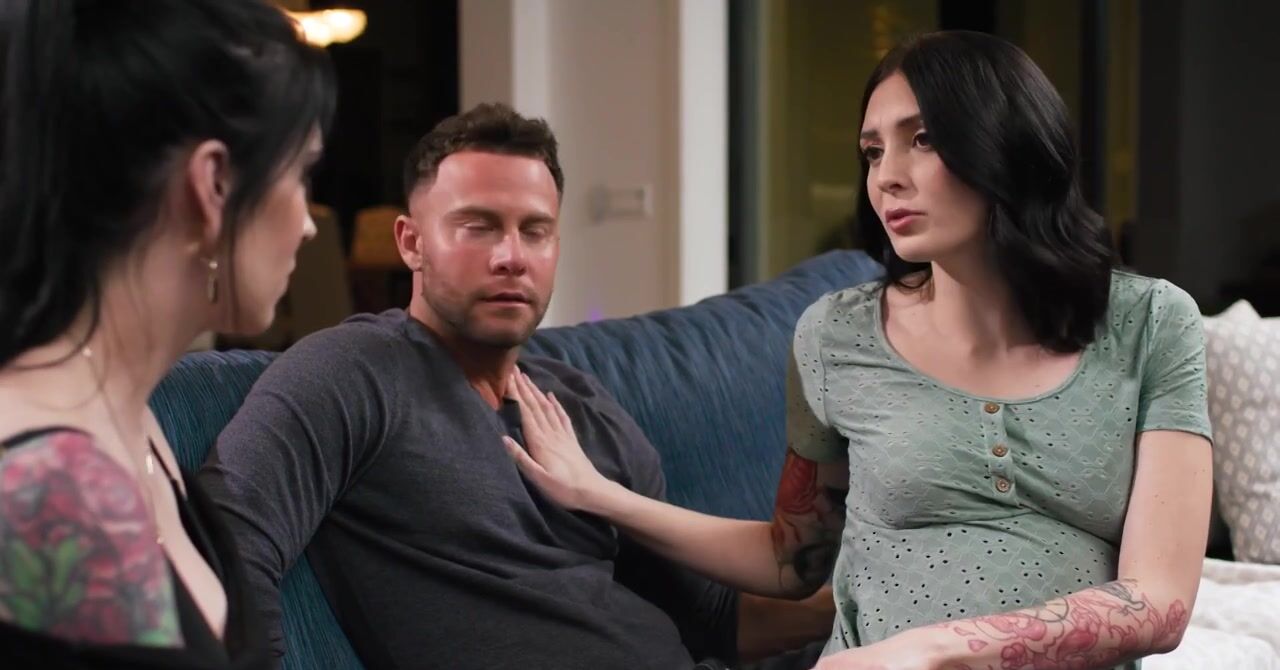 «Беременная жена не может трахаться, но ей очень хочется. Зато мужа может удовлетворить её развратная подружка. Что ж, супруга с удовольствием посмотрит на то как благоверный трахнет черноволосую проказницу с татуированным телом. Жене, кстати, безумно всё это понравилось. Она стала ласкать подругу в процессе, пока её жарил в пизденку муж. А сперма пролилась ей на привлекательное лицо. Жена нереально взмокла от такого зрелища.»