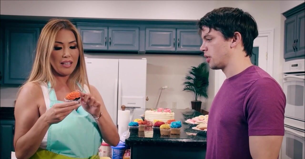 «Парень сперва соглашается помочь привлекательной азиатке в возрасте приготовить кексы, а потом предлагает ей более вкусное угощение. Чел достает свой хер со штанов и смазывает его взбитыми сливками, которые мамочка с кайфом принимается слизывать. Это действительно вкусно, но теперь очередь парня, теперь он будет лизать её пизду. Всё не ограничивается оральными ласками, милфа и на секс соглашается.»