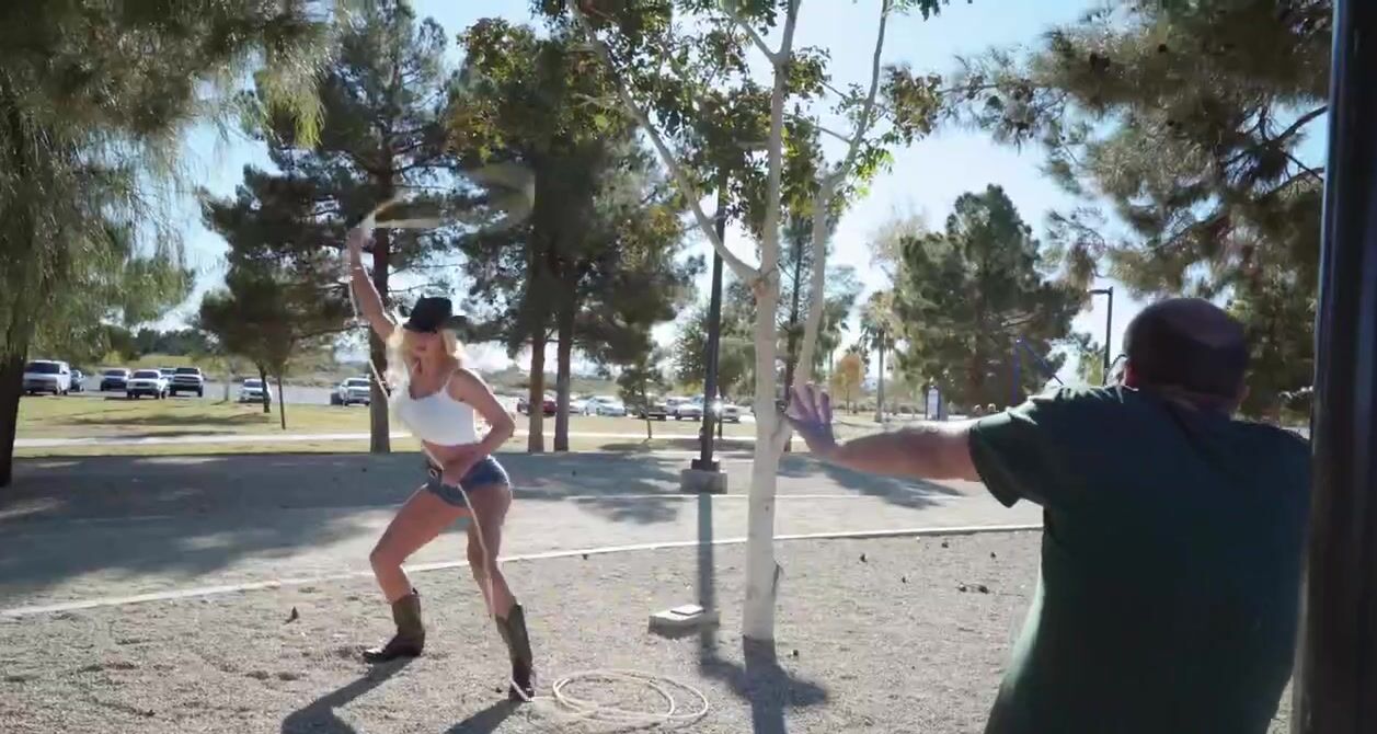 «Шикарная ковбойша захомутала мужика и потянула его трахаться. Белокурой милфа в очень коротких шортах сделала то, что умела лучше всего — занялась диким сексом. Опытная развратница в шляпе принялась сперва делать глубокий минет, а потом отдалась в киску. Во время жаркого полового акта она ещё и на лицо партнера садилась, получая удовольствие от кунилингуса. Бестия получила нереальный кайф и попросила кончить ей на лицо.»