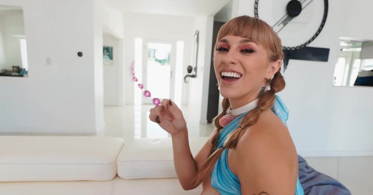 «Грубый мужик имеет дело с послушной красоткой. Как хорошо, что их сексуальные предпочтения совпадают, что мужчине, что телке нравится жесткий анал. Изначально эта проказница с большими натуральными сиськами задирает кожаную юбку розового цвета и разрабатывает анус разными игрушками. Трахается она жарко и получает нереальный кайф от ебли. А кончает самец ей на леденец, который она обсасывает, наслаждаясь вкусом спермы.»
