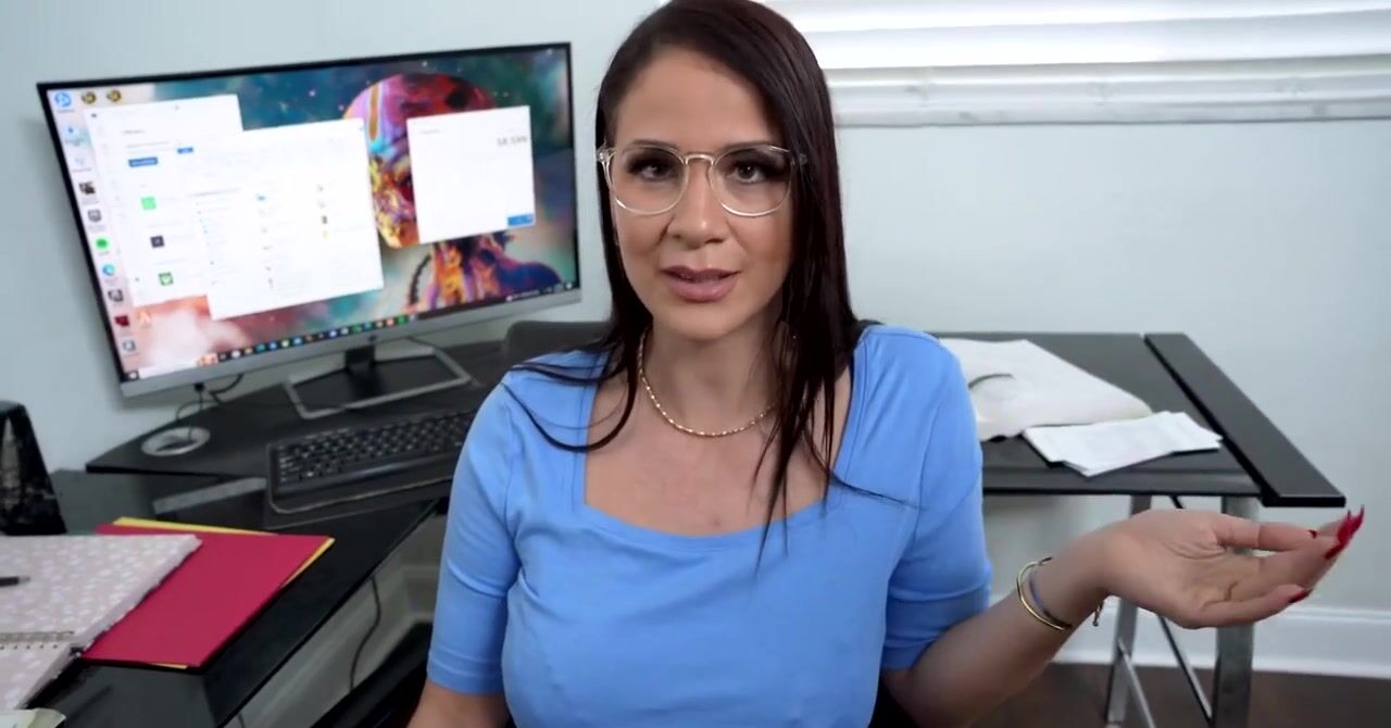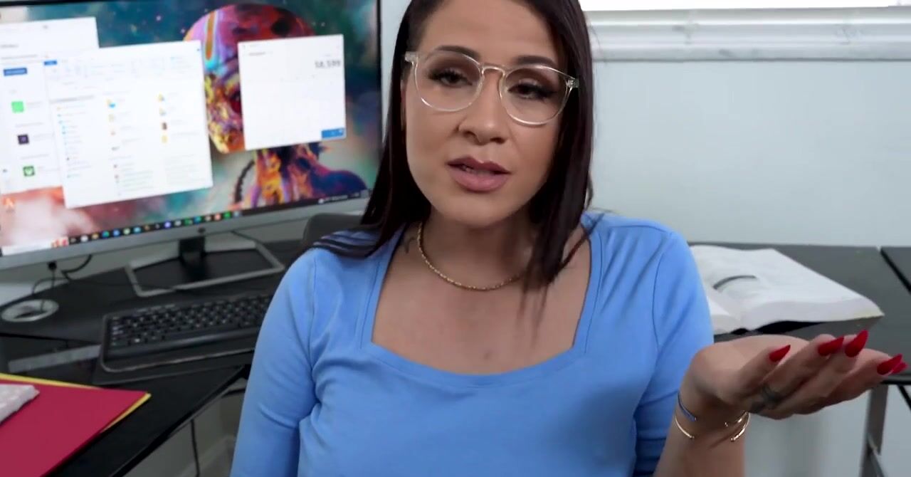 «Рабочие задачи подождут, привлекательная милфа в очках безумно хочет трахаться и поэтому принимается себя удовлетворять. Когда её застает коллега за этим делом, брюнетка возбуждается ещё сильнее. Руку она не убирает, а продолжает мастурбировать перед ним, отодвинув трусики в сторону и показав киску. Эта жаркая мамочка уже вскоре насладилась крепким членом молодого коллеги, который её довольно жарко поимел.»