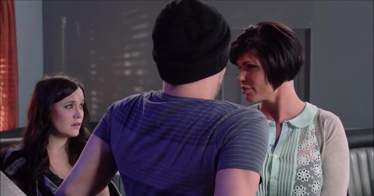 «Строгая мать требует чтобы парень дочери показал свой член, она должна быть уверена в том, что её девочка получает всё самое лучшее. Хуй оказывается очень даже крепким и толстым, мамка довольна, но теперь она намерена показать дочке как та должна ублажать своего бойфренда. Эта привлекательная сучка с силиконовыми сиськами опускается на колени и принимается делать смачный минет, после которого садится на него киской.»