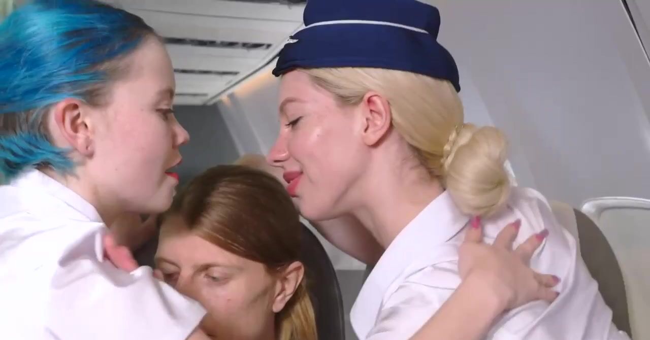 Пассажир забрался в трусики стюардессы и спровоцировал групповой секс