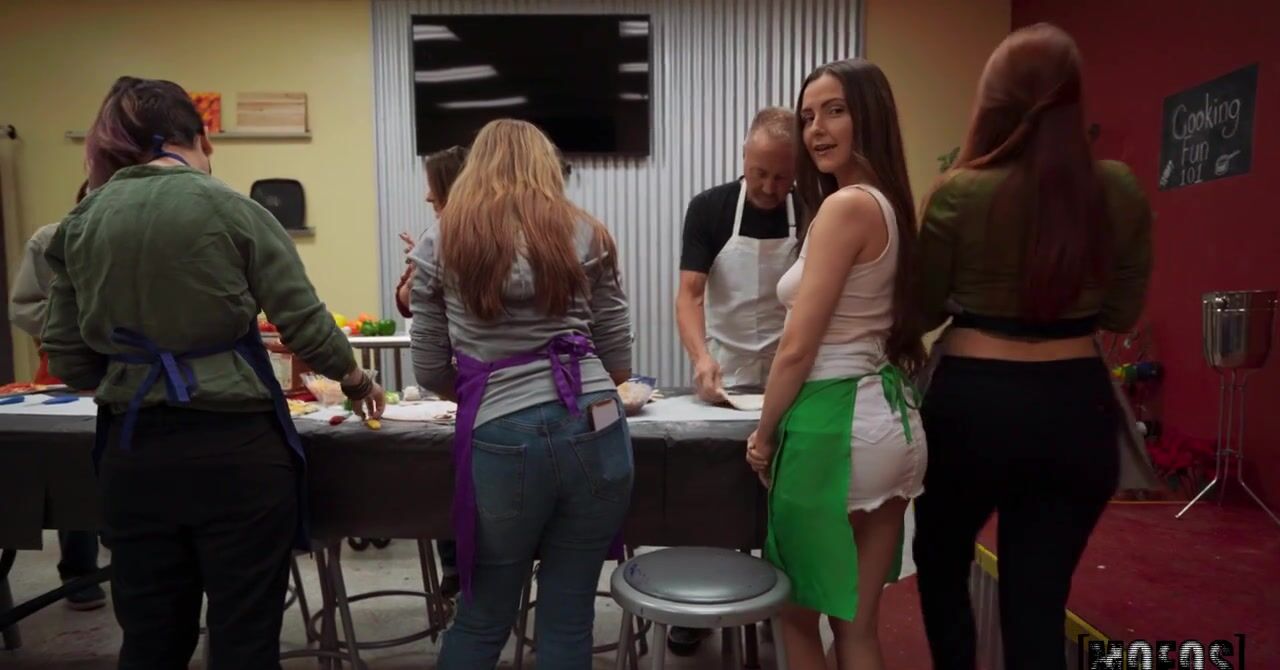 «Милая кузина готовит еду вместе с большой семьей и попутно строит глазки парню. Они уже выросли и теперь привлекают друг друга. Черноволосая телка не может выдержать, она принимается прямо тут же, тайком от всех сосать его хер. Крошка даже никуда не прячется, ей плевать, что кто-то может её застать за еблей, она безумно хочет секса. Эта проказница засовывает себе в рот перец, чтобы не стонать слишком громко.»