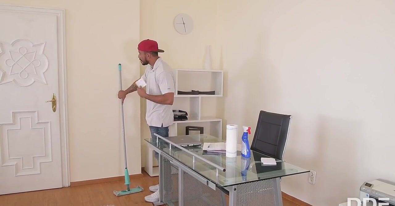 Новый уборщик в офисе жарко трахает грудастую начальницу