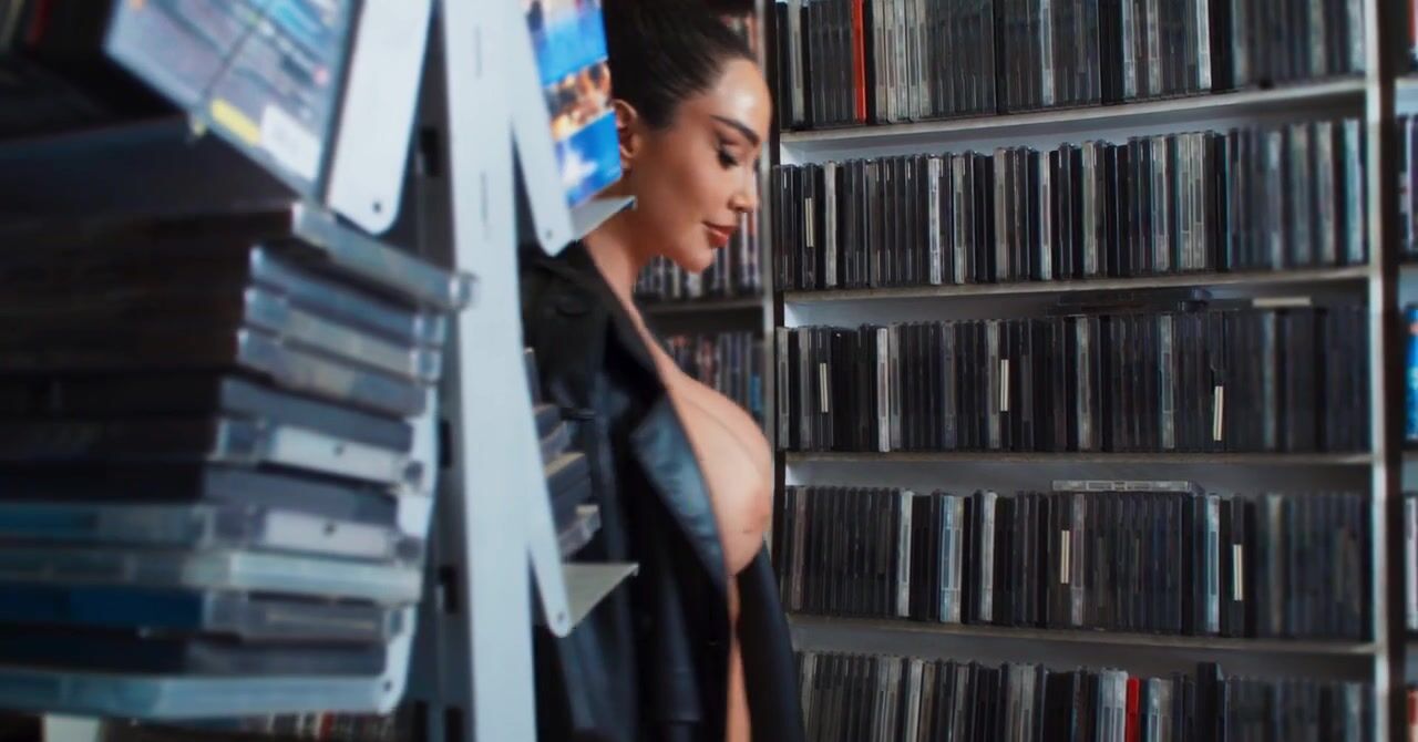 «Красотка выбирала себе эротический фильм на вечер в видео салоне и так возбудилась от развратной обложки на диске, что принялась ласкать свою киску. За этим занятием её вскоре застал продавец консультант. Он поспешил удовлетворить черноволосую бестию с силиконовыми сиськами. Чувак угостил её своим членом и жарко поимел покупательницу в магазине, а сперму он спустил на красивое лицо и грудь, цыпочка была не против.»