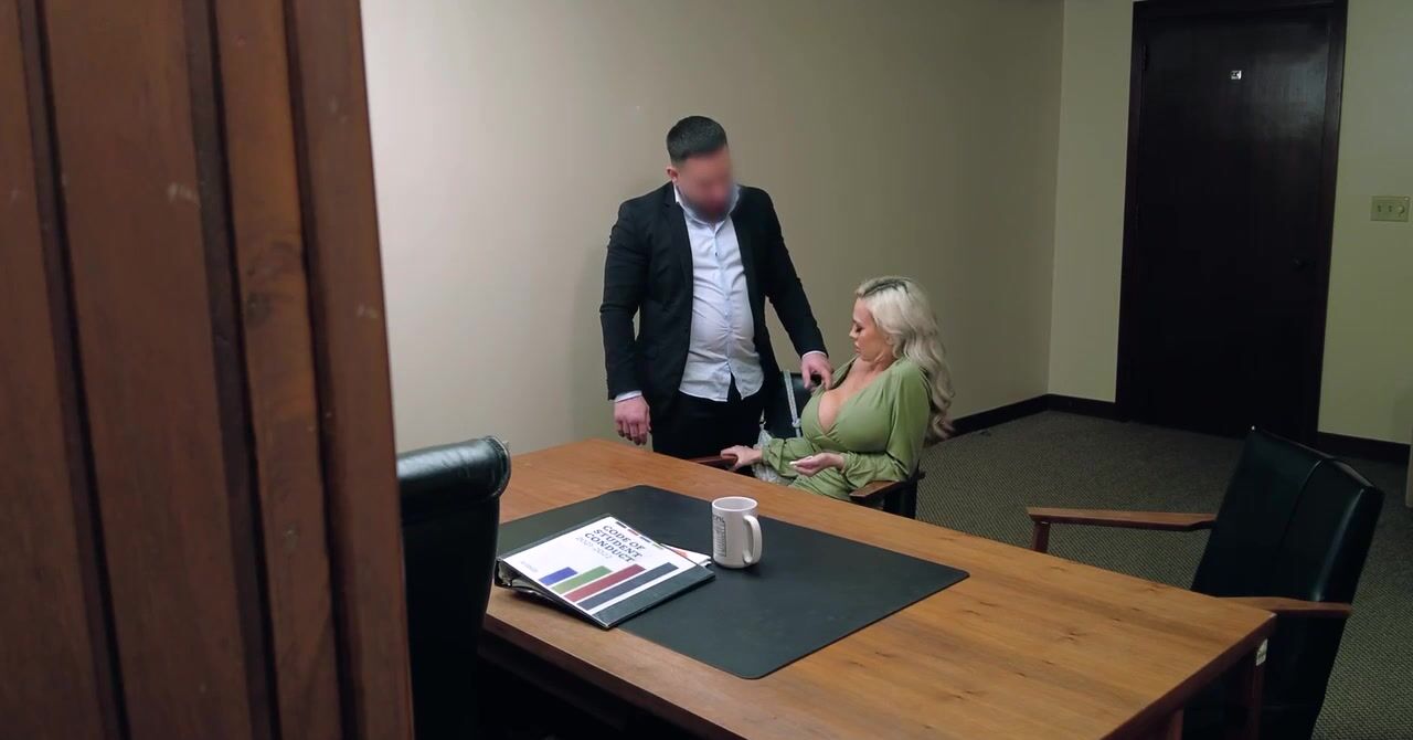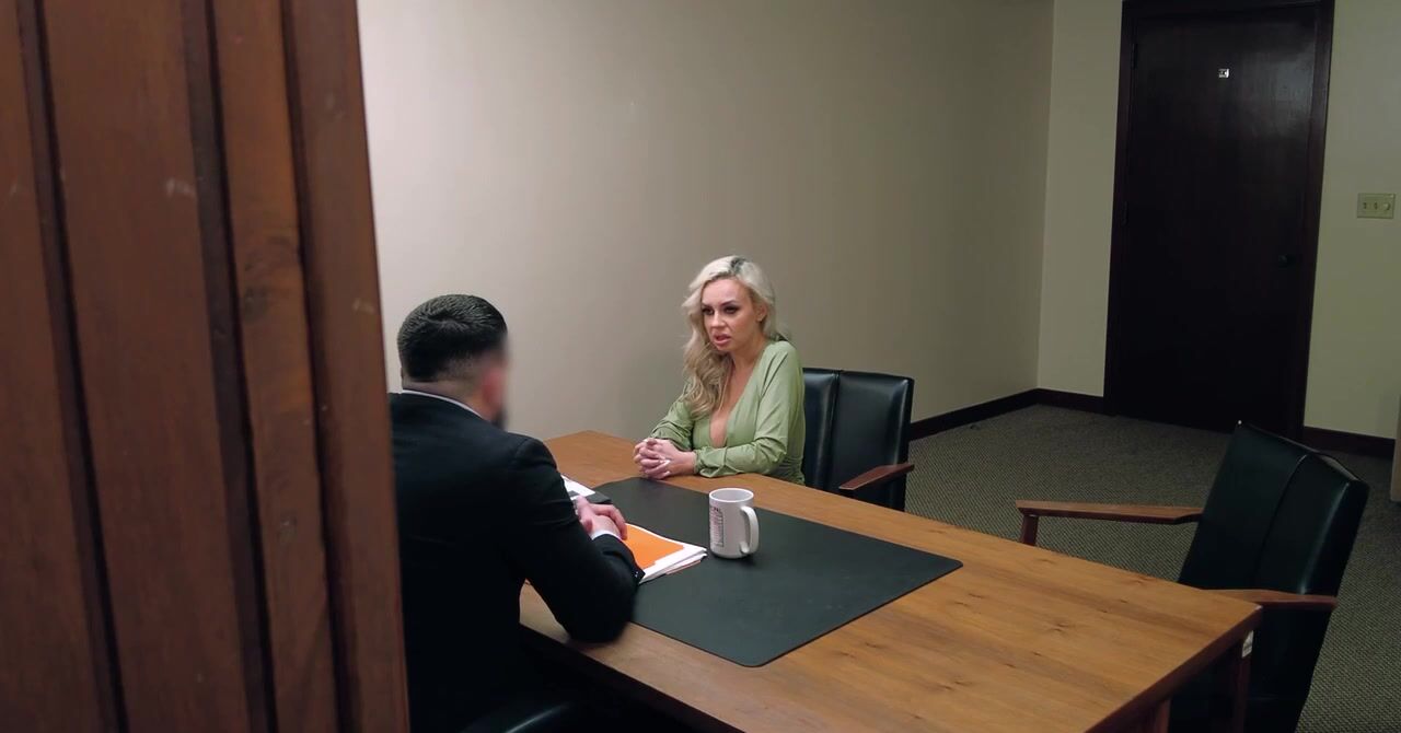 «Босс пользуется своим положением и не стесняется разводить на секс привлекательную милфу, которая всего лишь хочет устроиться работать учительницей. Ей нужна работа? Ну а мужику хочется ебаться, так что белокурой сучке придется поработать ротиком и киской. Она как знала чем закончится собеседование, на ней были очень сексуальные открытые трусики, которые можно было не снимать во время жаркой ебли.»