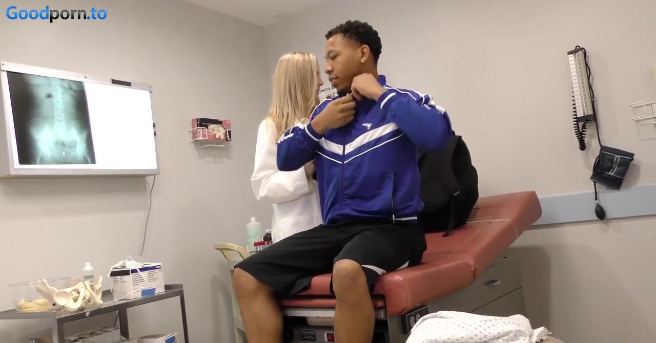 «У чернокожего пациента большой хуй, белокурая докторша засматривается на него и возбуждается. Она решается заняться с негром сексом, хотя это и не этично. Зрелая блондинка с силиконовыми сиськами снимает халат и показывает упругое тело, которое скрывается под ним. Вот теперь уже возбуждается и негр, он наслаждается умелым ротиком милфы и жарко трахает её на койке в палате, доставляя развратнице удовольствие.»