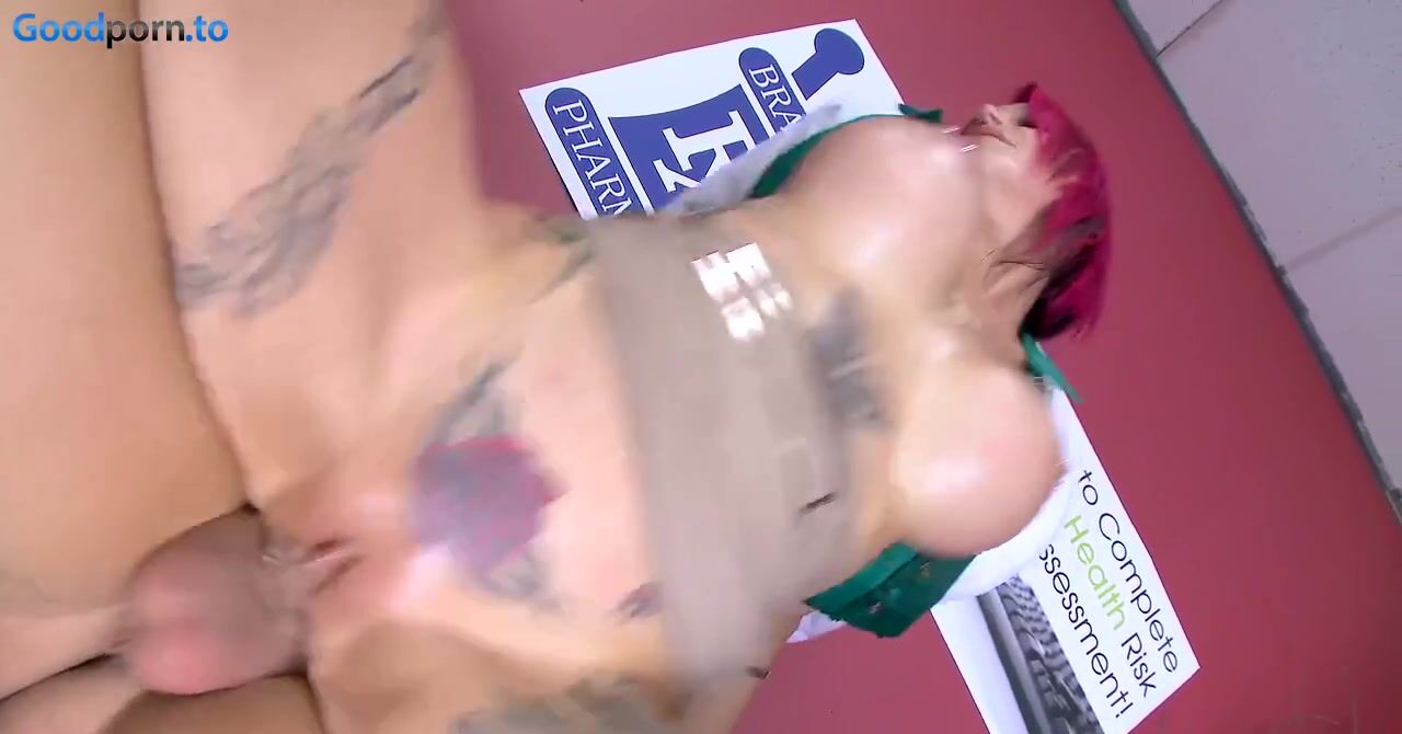 «Татуированная аптекарша с розовыми волосами предлагает клиенту трахнуться. Изначально парень хотел купить какие-то таблетки для потенции, с которой у него в последнее время были проблемы. Но оказалось, что проблема была в его девушках, они просто были недостаточно сексуальными и развратными. Опытная же аптекарша оказалась нереально страстной особой, которой удовлетворила все желания парня и хер у него стоял как надо.»