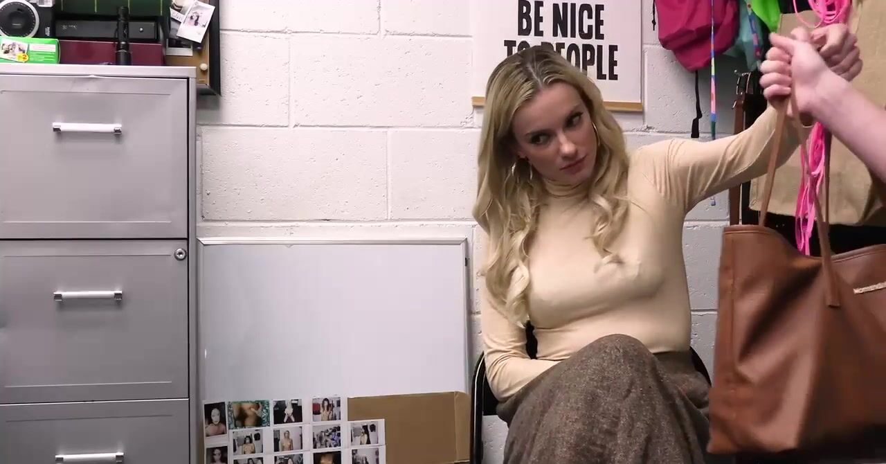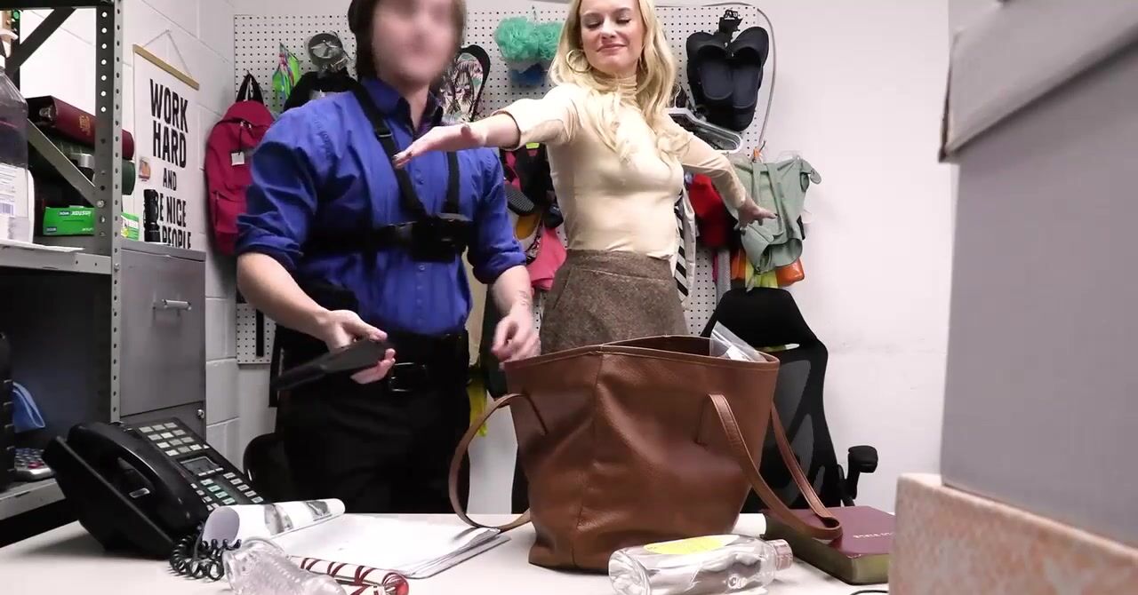 «Белокурая милфа пошла по кривой дорожке криминала и совершила воровство в магазине. Теперь ей приходится ебаться с охранником, чтобы избежать ответственности, ведь сесть в тюрьму она никак не хочет. Привлекательная бестия берется делать смачный минет и отдается в мокрую пизду, получив удовольствие. Блондинка оказывается нереально развратной особой, она прекрасно сосет хер и жарко ебется в мокрую киску.»