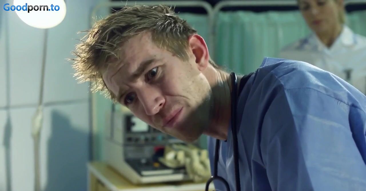 «Доктор спасает жизнь пациента и получает в благодарность секс от его прекрасной жены. Белокурая милфа с большими силиконовыми сиськами решает отблагодарить врача и набрасывается на его хуй. Фаллос оказывается очень большим, так что зрелая бестия понимает — она получит от ебли нереальный кайф. Грудастая сучка наслаждается как минетом, так и самим сексом, а супруг в отключке не знает чем его женушка занимается.»