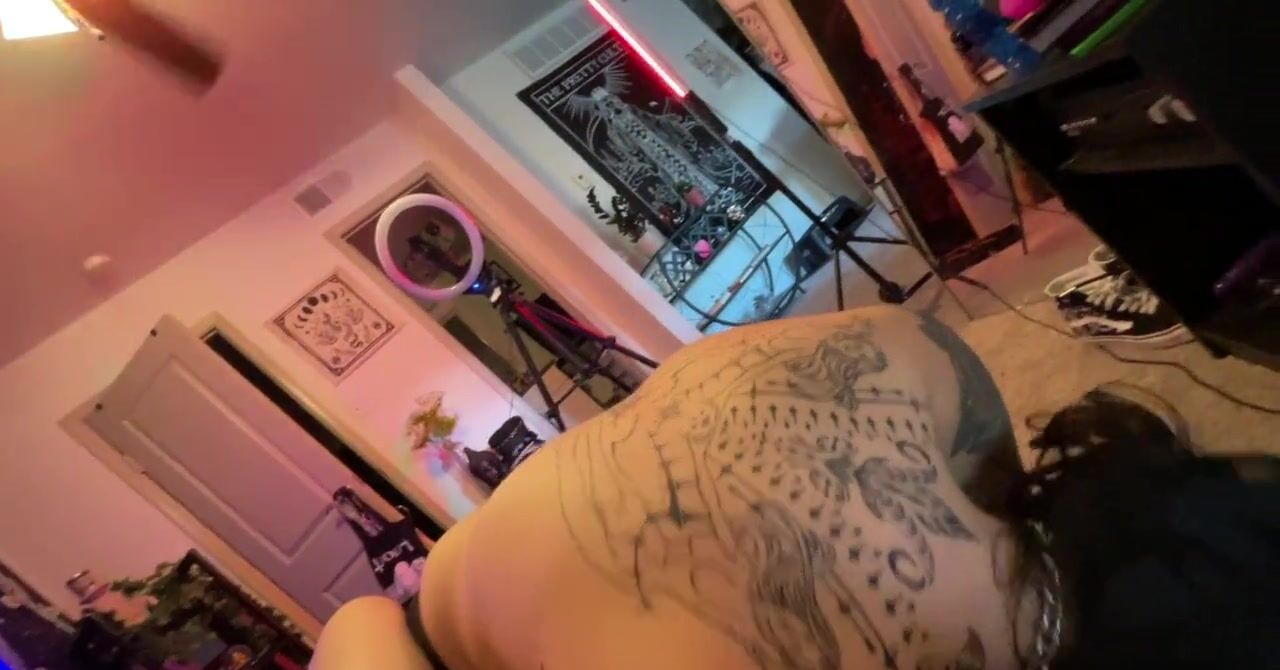 Татуированная неформалка трахает стройную девушку в волосатую пизду