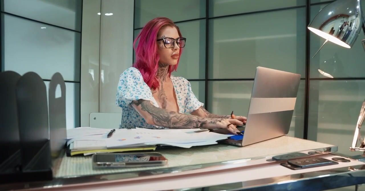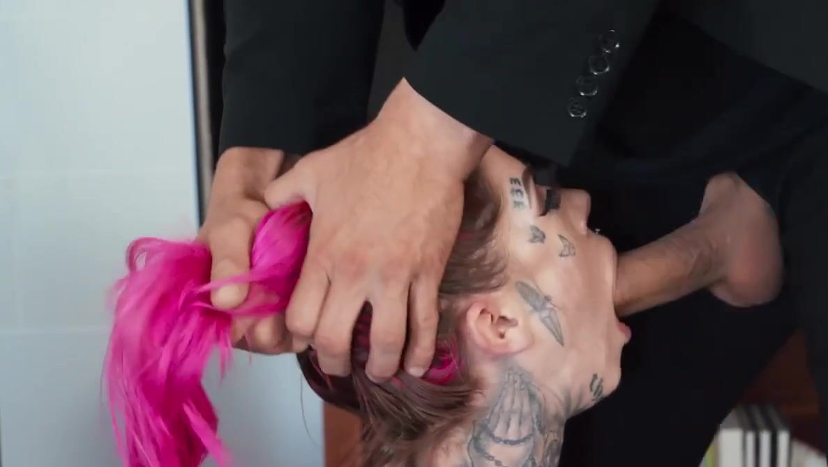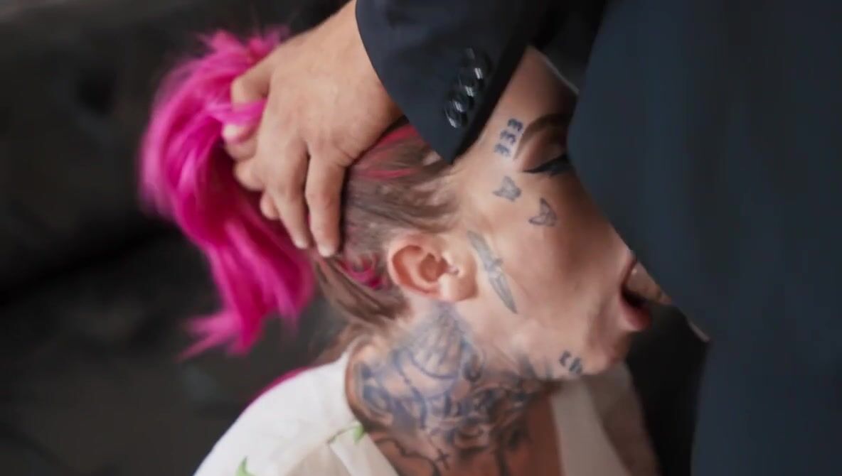 «Татуированная милфа с розовыми волосами зашла в гости к боссу, согласившись стать его секс рабыней. Оказалось, что начальника заядлый БДСМщик, который поставил её раком и первым делом отшлепал плеткой. Это возбудило гостью, она захотела продолжения. Далее пришлось делать глубокий минет и страстно ебаться в разных позах. Руководитель поимел её как сучку и залил спермой лицо подопечной, которой всё это безумно понравилось.»