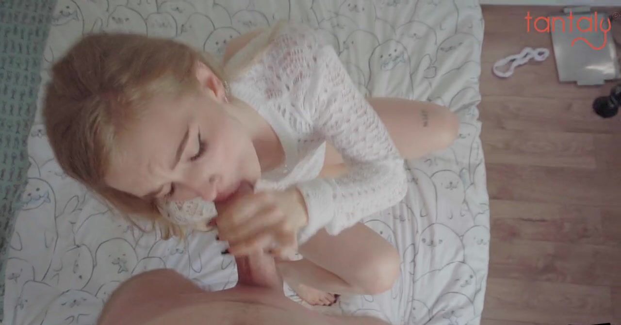 «Сводная сестра купила себе искусственный член, который жарко сосет в спальне, а потом садится на этот фаллос бритой киской, получая удовольствие. Как раз в этот момент в её комнату входит сводный брат, который застает сестричку за самоудовлетворением и предлагает ей лучше заняться сексом. У брата ведь есть толстый хуй, которым стройная блондинка вполне себе может воспользоваться. Эта крошка не отказывается.»