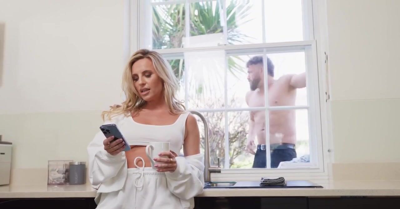 «Мойщики окон застали белокурую хозяйку дома за мастурбацией в спальне. Эта жаркая милфа с силиконовыми сиськами расставляла ноги на кровати в стороны и активно теребила свою бритую писю пальцами, получая удовольствие. Опытная развратница с радостью согласилась заняться групповым сексом с этими мойщиками. Ей повезло, у парней оказались большие члены, так что зрелая красотка обкончалась во время МЖМ.»
