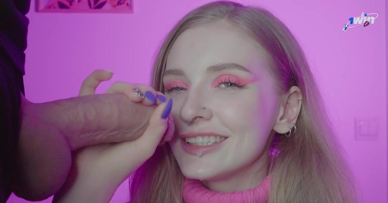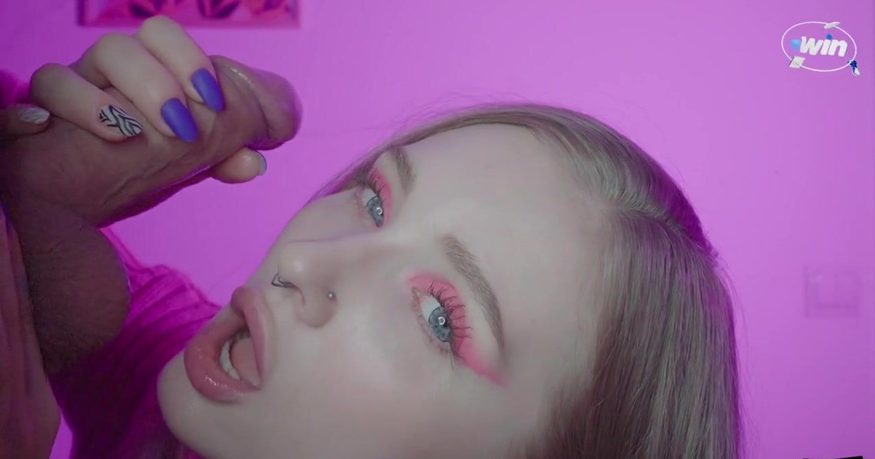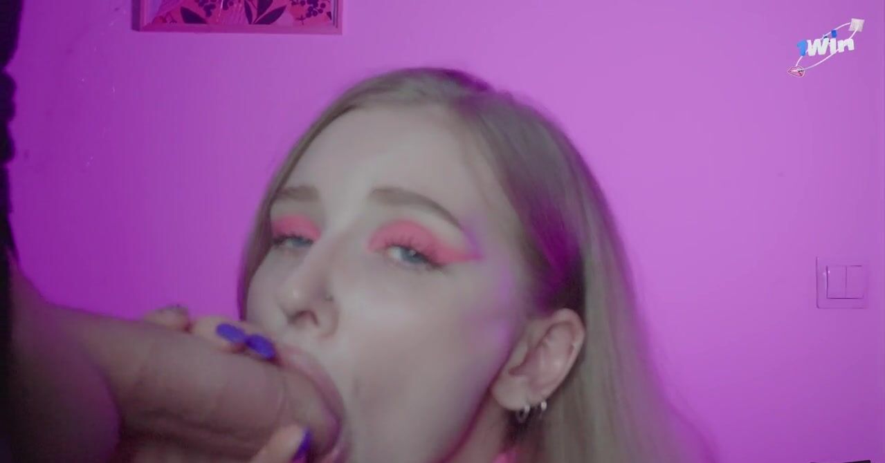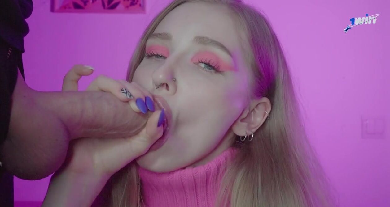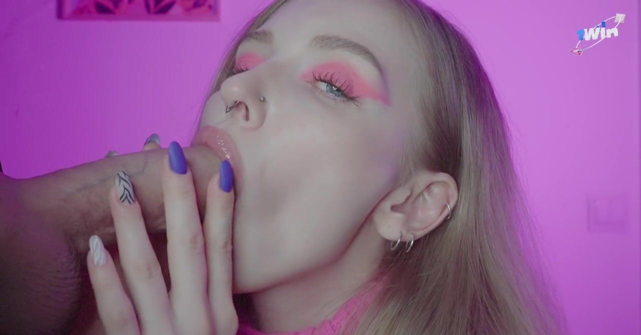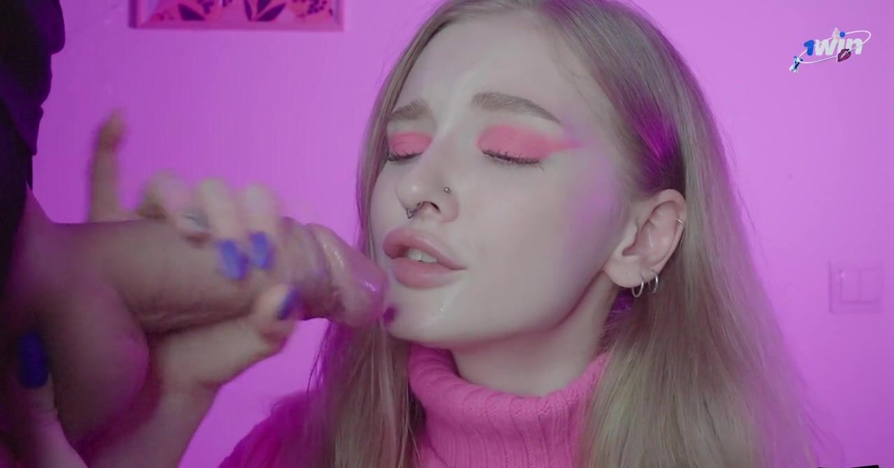 «Милая блондинка с розовым макияжем и в розовом же свитере наслаждается минетом не меньше парня, толстый член которого она сосет. Милашка доставляет ему удовольствие и сама постанывает, ей безумно по кайфу сосать и лизать хер. Крошка могла бы довести его до экстаза за пару минут, но она не делает этого, ведь цыпочка хорошо знает, что если растянуть кайф, то потом оргазм будет в разы мощнее. А сперму она принимает в ротик.»