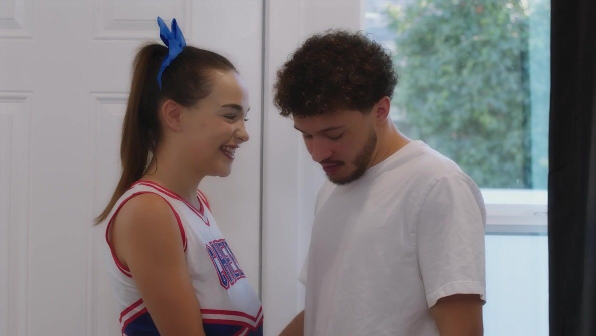 Чирлидерша с натуральными сиськами приходит к однокурснику ебаться