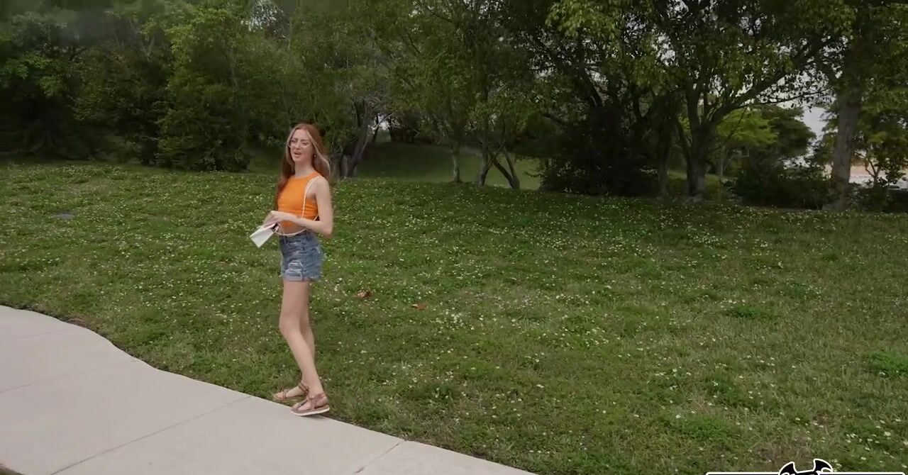 «Рыжая милашка в очках соглашается заняться сексом за деньги в машине с незнакомцем. Пикапер предлагает солидные деньги, так что стройная крошка с маленькими сиськами не может отказаться. Эта проказница принимается делать ему страстный минет и отдается в узенькую киску раком. Крошка понимает: хорошо, что она согласилась. Мужик очень страстно её поимел и во время этой ебли крошка кончила несколько раз.»
