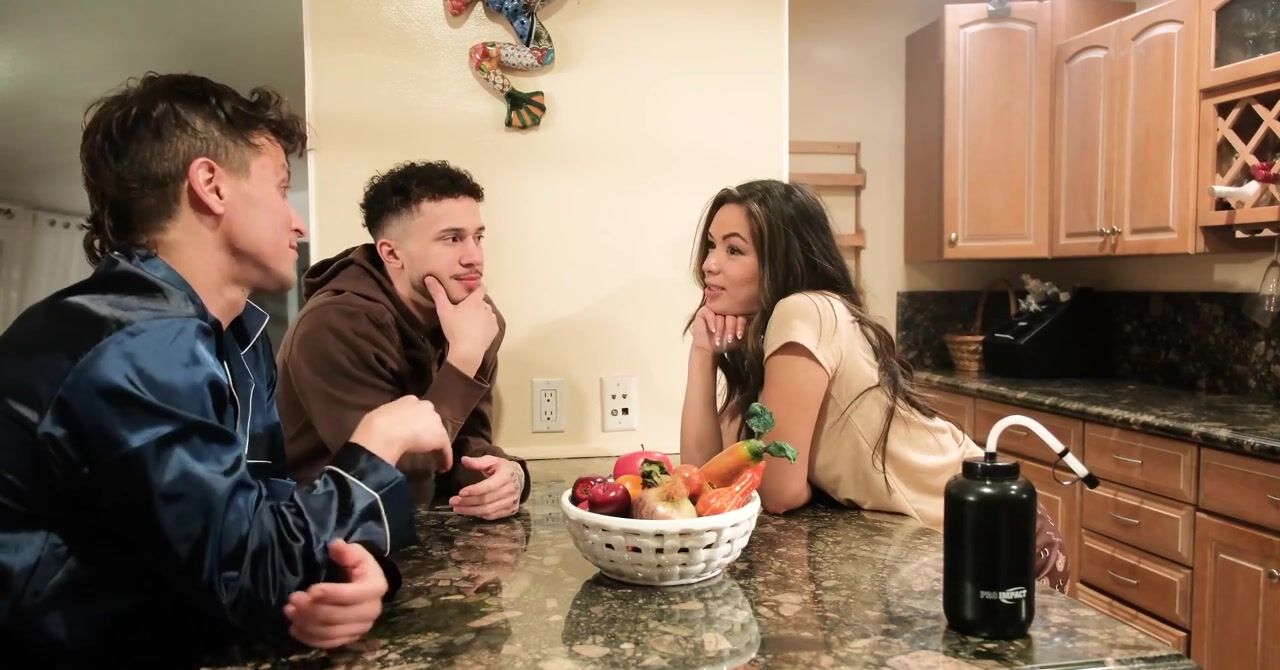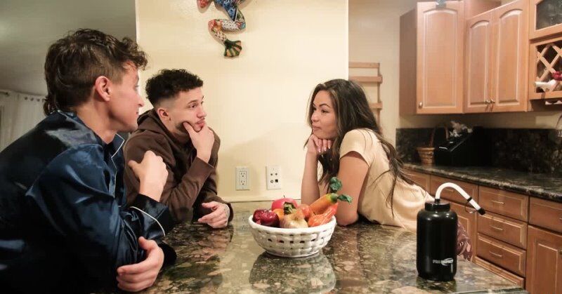 «Сводные братья соскучились за сестричкой, которая как раз была на учебе. А теперь девушка приезжает домой на насколько дней и ребята предлагают ей вспомнить былые деньки, когда они все занимались сексом втроем. Брюнетка не против, ночью на кухне она принимается шикарно отсасывать члены братьев, а затем отдается им по очереди в киску. Теперь крошка ебется ещё более умело, она научилась прекрасно сосать.»