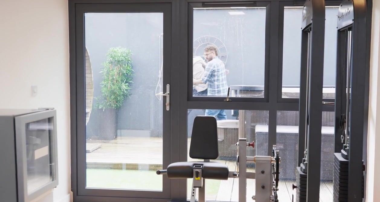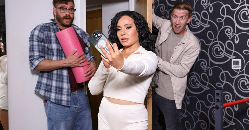 Подсмотрели за тренировкой соседки и трахнули её в два члена