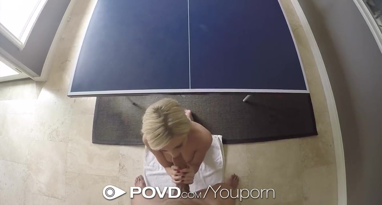 «Худощавая блондинка закончив играть с парнем в настольный теннис на раздевание, осталась в финале полностью обнаженной, готовясь впустить жеребца в виде завершающего приза. Запрыгнув на игровой стол, светловолосая сучка с радостью распахнула перед кобелем обе дырки, попросив ловеласа сделать ей приятно язычком. С поставленной задачей ухажер справился на отлично, особое внимание сконцентрировав на ее любимом анилигусе. В след за оральной прелюдией, красотка ощутила медленное проникновение мясистого фаллоса в ее узкую промежность.»