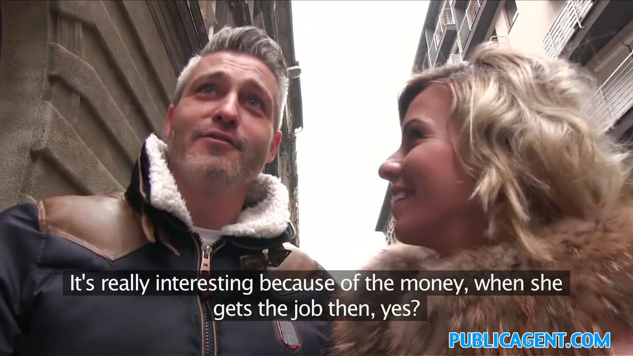 «Прогуливаясь с видео камерой в руках, порно агент приметил на улице очень подходящею пару, которая отлично вписывается в его новый фильм. Не упуская момента оператор подошел к ним с интересным предложением, в котором они приятно проведут время у него на кастинге, и при этом прилично заработают деньжат. От такой заманчивой сделки парочка не отказалась, и когда они зашли к нему в офис, деваха с гордостью за свою фигуру начала позировать в нижнем белье, демонстрируя роскошные натуральные сиськи. Далее ухажер доплатил сучке чтоб она ему пососала, что красавица с большим опытом исполнила, дав ему позже оприходовать свою выбритую киску до финального камшота в ее рот.»