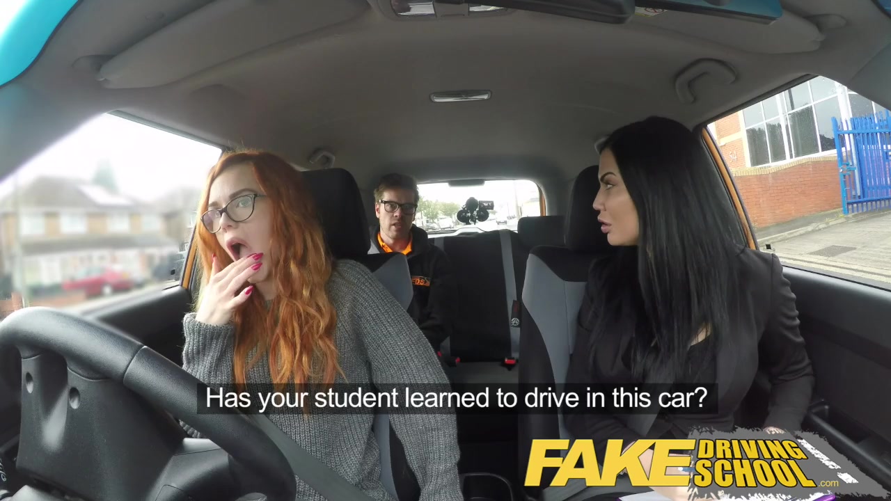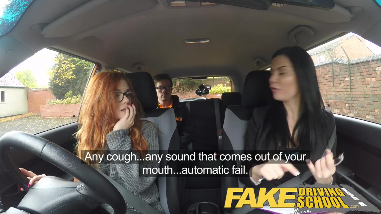 «Рыжеволосая девушка сев за руль автомобиля начала сдавать экзамен по вождению двум инструкторам, которые скептически относятся ко всем новичкам. Девчонка сразу почувствовала себя не в своей тарелке, и во время поездки она сильно занервничала. Поняв что у нее нет шансов получить желанные водительские права, красотка прибегла к своей внешности, с помощью которой она всегда получала желаемое. Рядом находившийся мужчина только обрадовался ее позывам, особенно когда ее идею поддержала еще одна сучка. В этот день телки осуществили все свои интимные желания прямо в салоне машины, получив в награду добротное семяизвержение из пениса кавалера.»