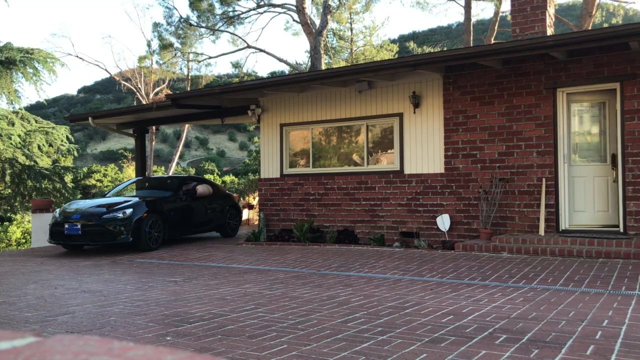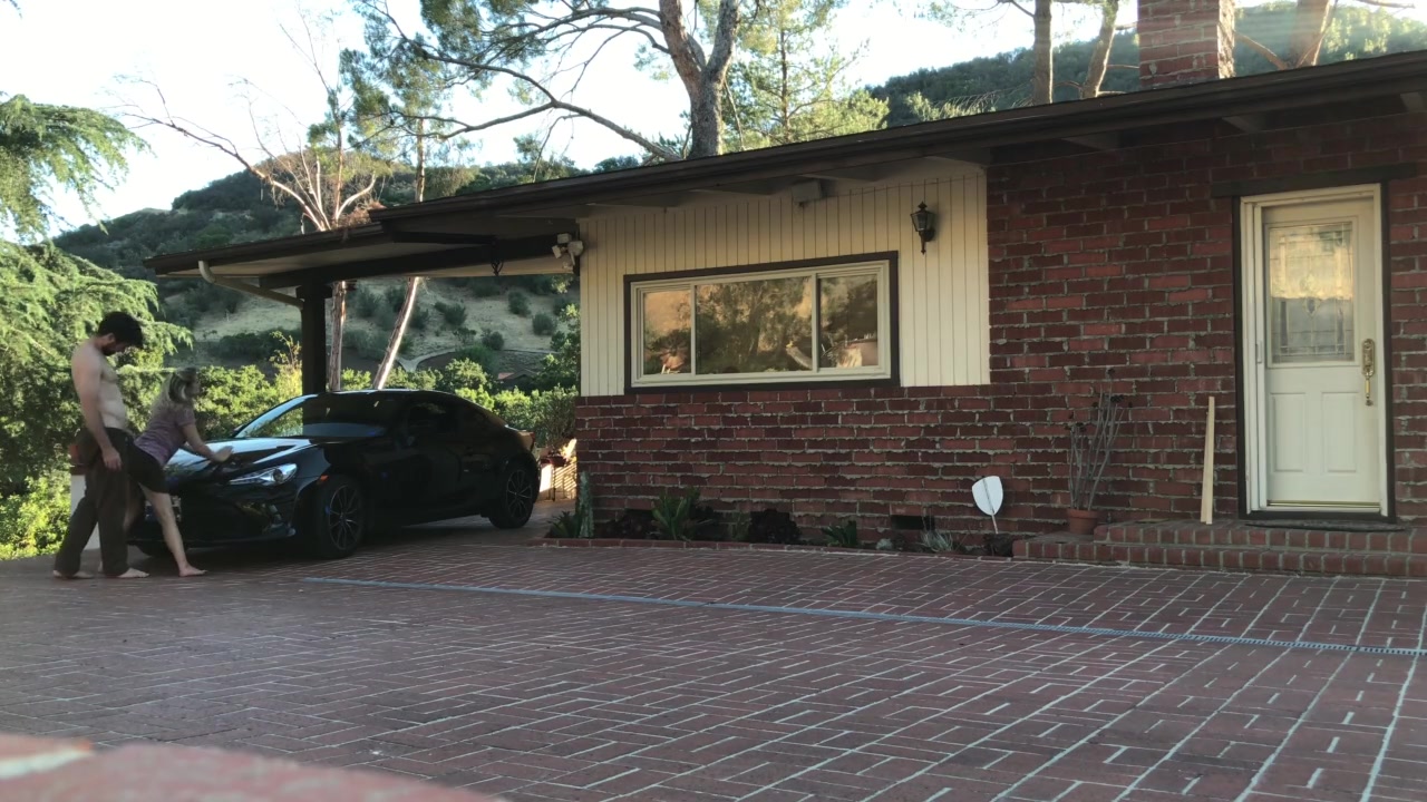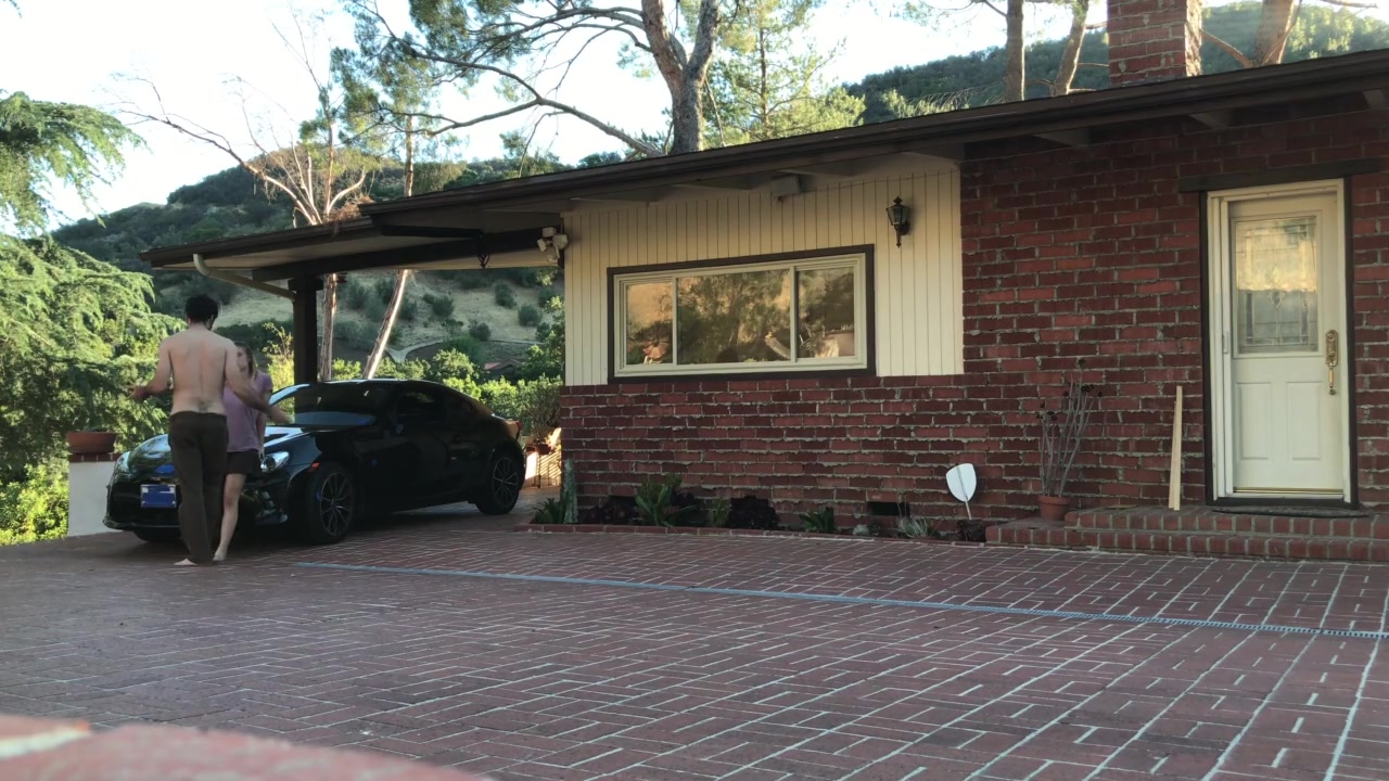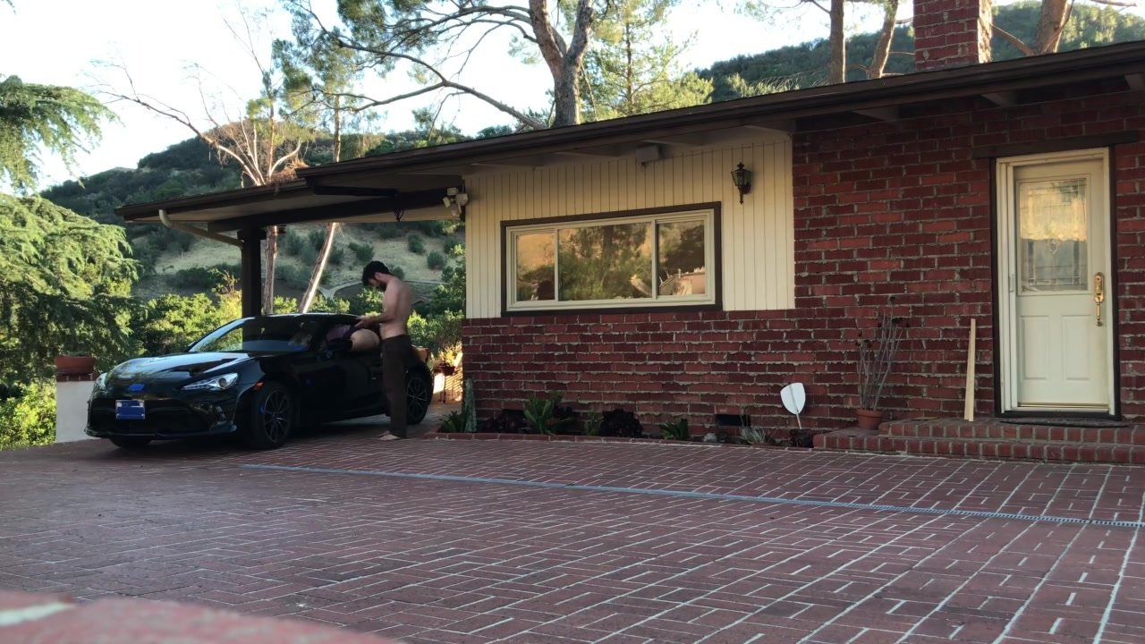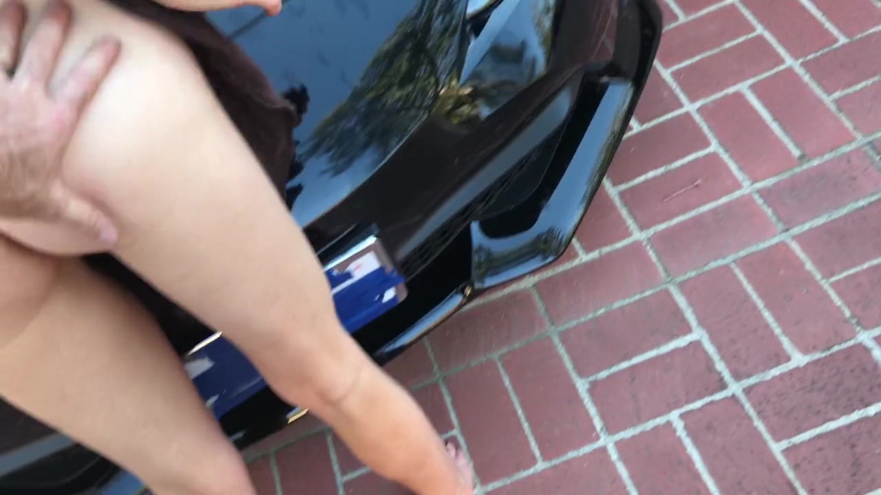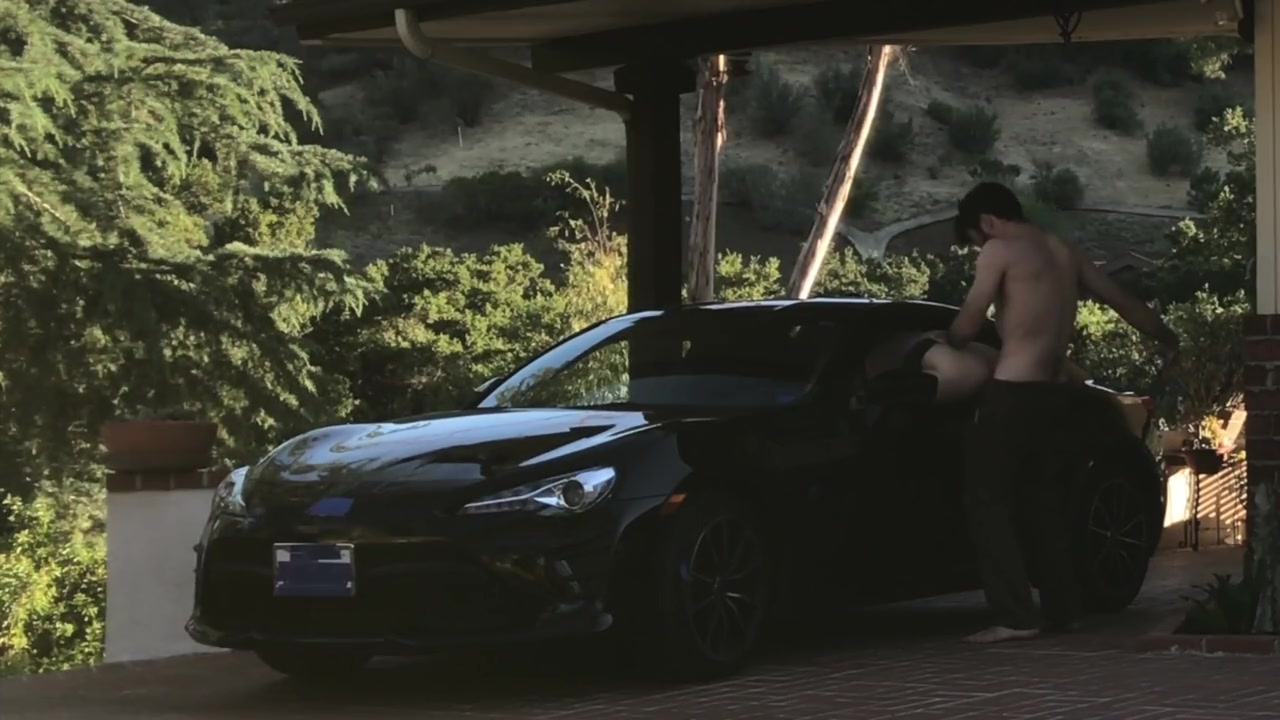 Наклонившаяся раком подруга дает себя драть возле спортивного автомобиля