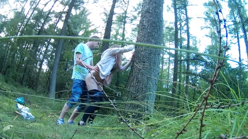 «Высокий парнишка заманил в лес очень привлекательную девчонку, которой сделал заманчивое предложение снять их первое любительское порно. Данную идею малышка с радостью поддержала, и как только самец установил на против нее включенную видеокамеру, она с радостью спустила колготки и шикарно наклонилась раком, позволив счастливчику максимально глубоко войти в нее сзади. Ловелас сразу набросился драть жаждущую любви дырочку, доставляя любимое фантастическое удовольствие. Громко стонущая сучка давно так классно не проводила время на природе, получая удовольствие от каждого проникновения пениса.»