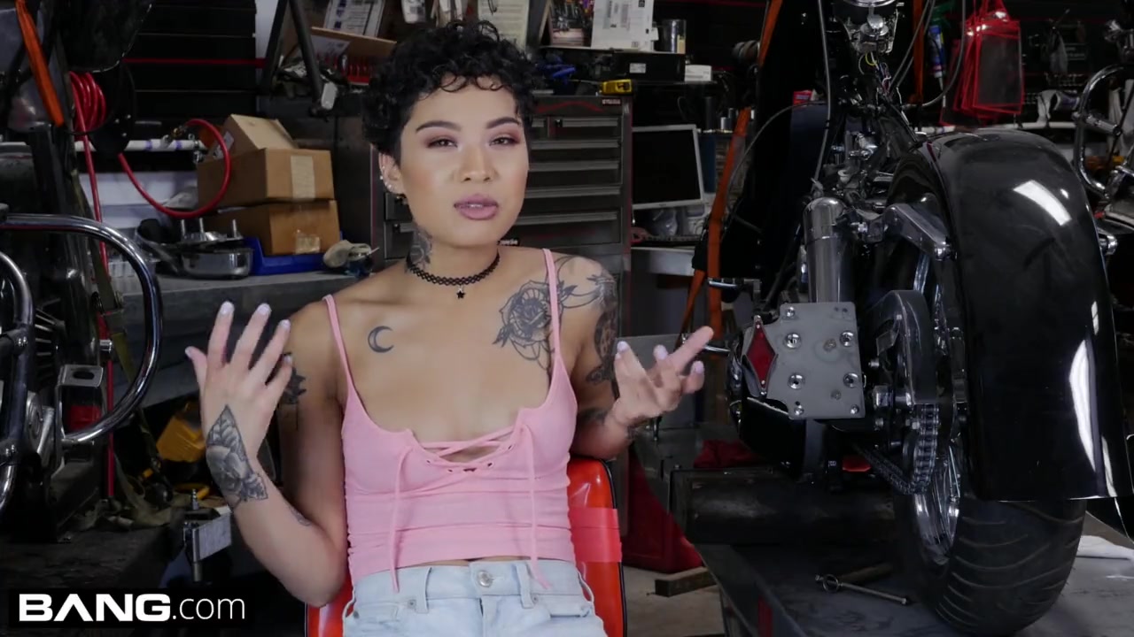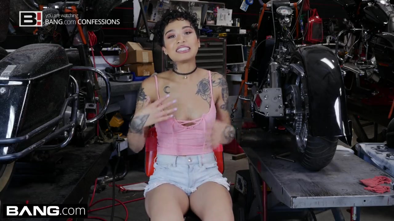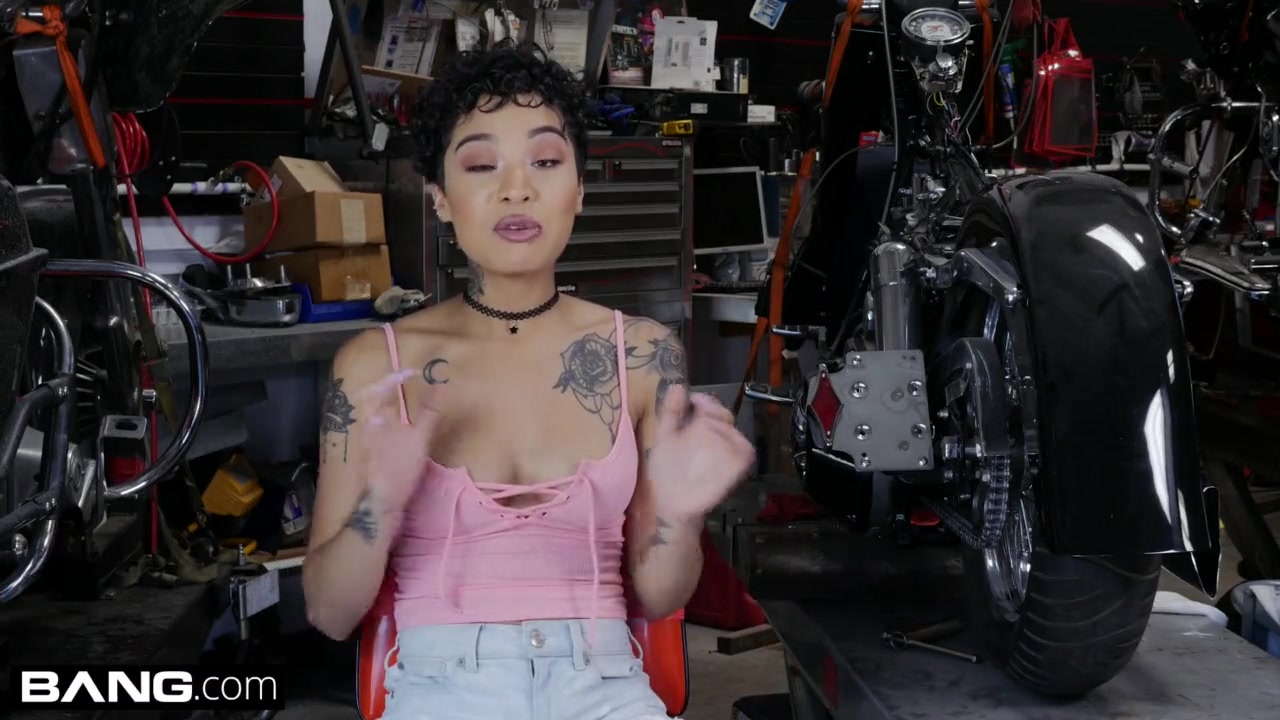 «Безумно горячая мулаточка, находилась в мото магазине с бывалым байкером, который захотел ей показать свой новенький байк. Оставив на себе только трусики, полуобнаженная малышка предвкушая немыслимое наслаждение оседлала работающий мотоцикл, ощущая промежностью сильную вибрацию стального коня. Моментально возбудившаяся красотка не стала скрывать как сильно ей захотелось секса, попросив кобеля достать хуй и нежно присунуть ей в рот. Как только растатуированная телочка закончила работать губами, она сразу оказалась на столе с расставленными ногами, давая партнеру полный доступ к желанной вагине, которой он воспользовался по полной программе.»