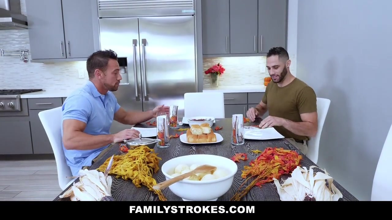 «Шикарная блондинка с огромными натуральными сиськами и упругой большой задницей, начала заигрывать с другом ее мужа, мечтая устроить вместе с ними головокружительную семейную групповуху. Во время совместного ужина белокурая сучка активно задействовала руки, начав кобелям классно дрочить под столом их набухшие перцы. Как только малышка их достаточно завила, то сразу стала на коленки, продолжив умелую работу губками. Далее мускулистые парни сконцентрировались на ее влагалище, которое в финале их жарких отношений обильно обкончали.»